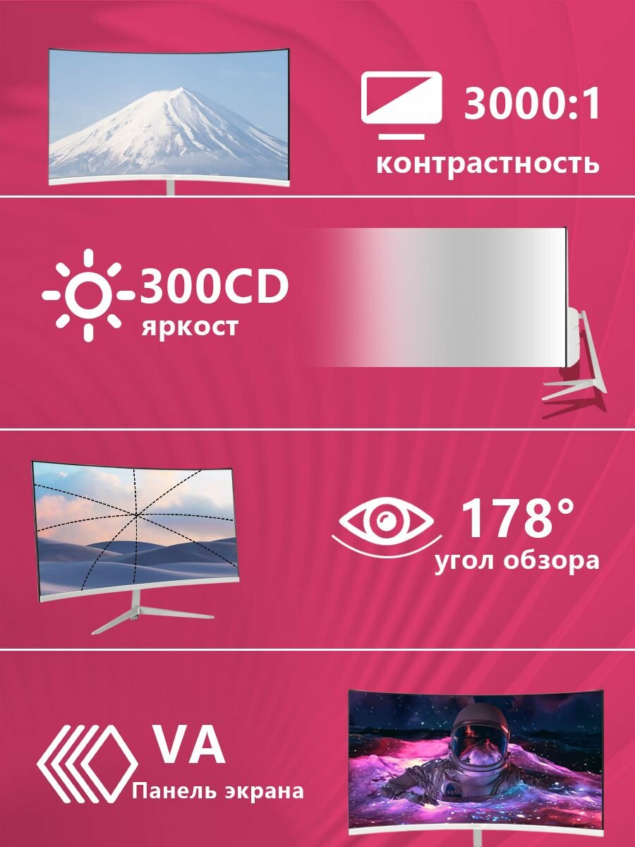 Сохранить27-дюймовый игровой монитор с криволинейным экраном, 2K 165 Гц, Белый интересное: