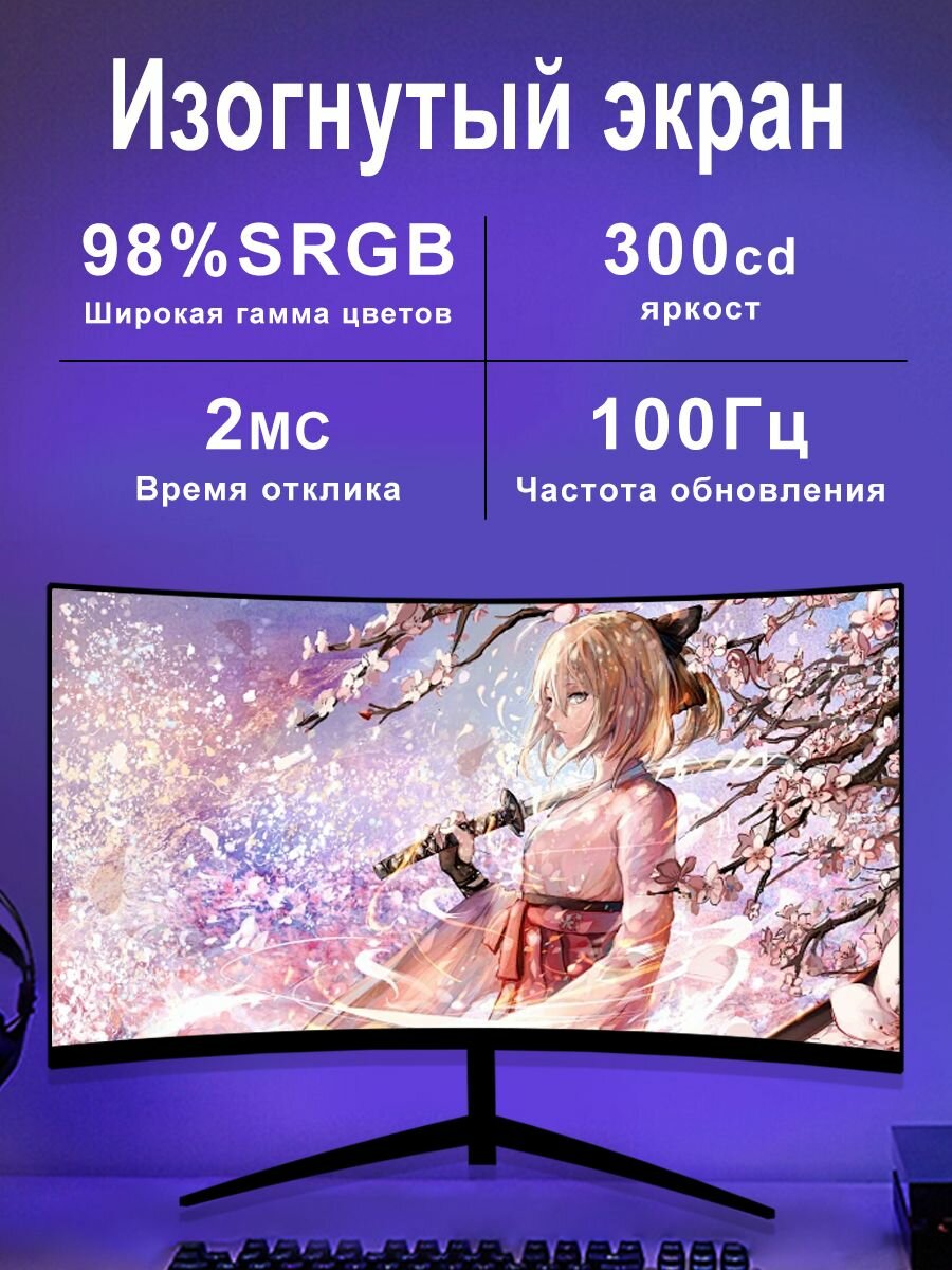 Купить 24 - дюймовый игровой дисплей, кривой экран, 100 герц, черный, предотвращающий синий свет
