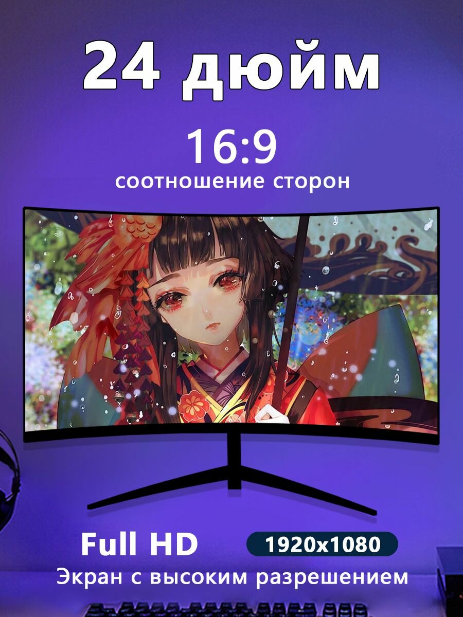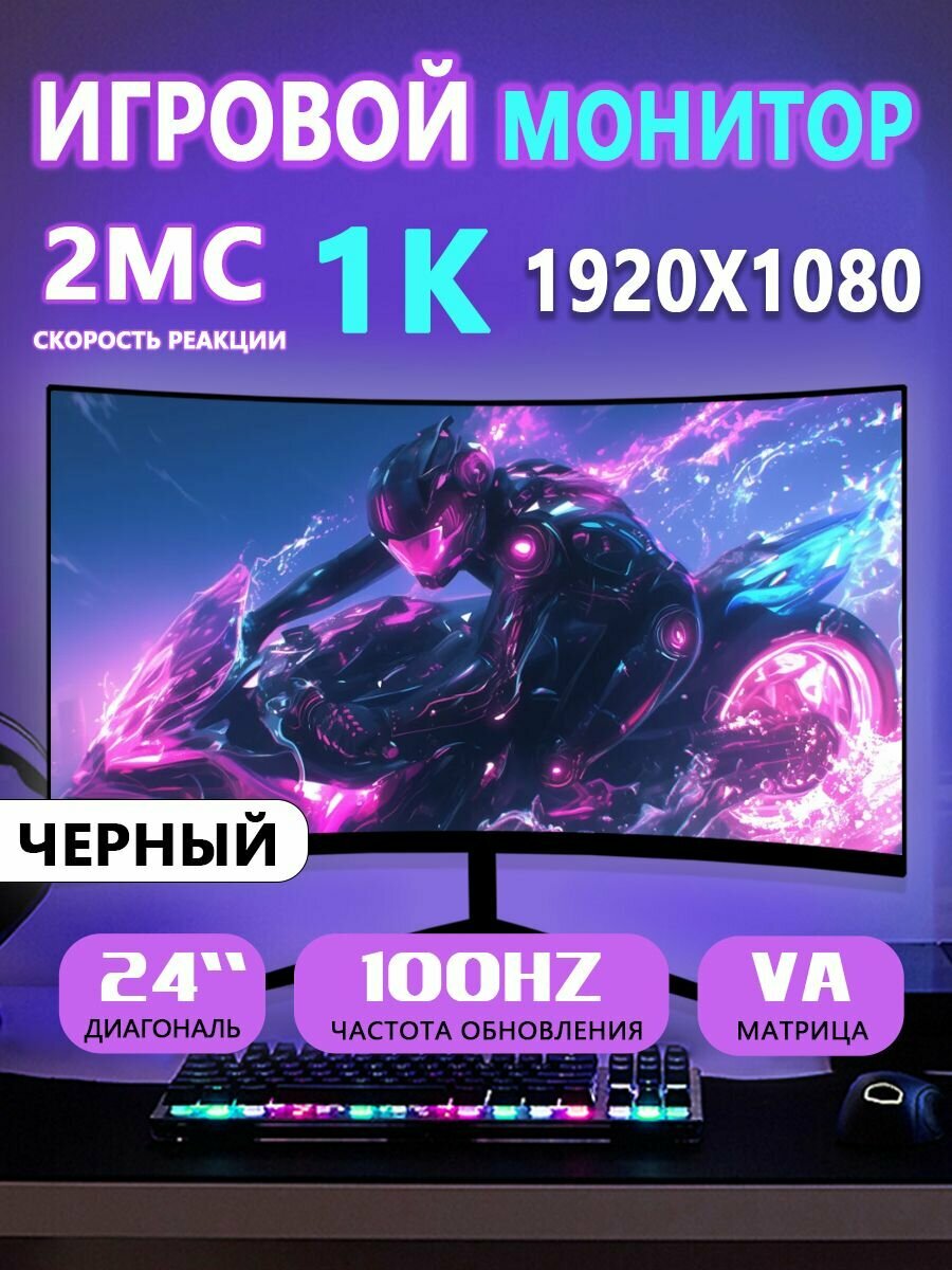 24 - дюймовый игровой дисплей, кривой экран, 100 герц, черный, предотвращающий синий свет интересное: