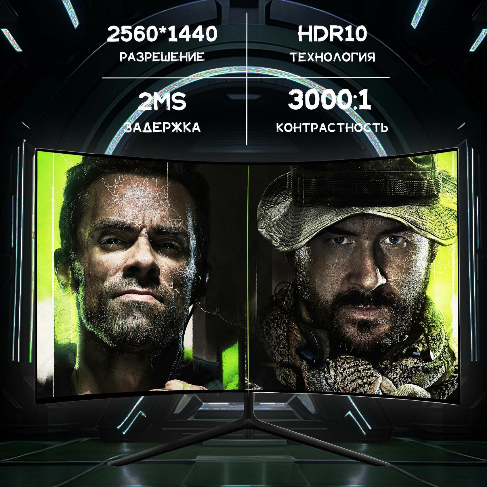 27" Монитор, Full HD, VA, изогнутый экран, 2K, частота обновления 165Гц, черный матовый