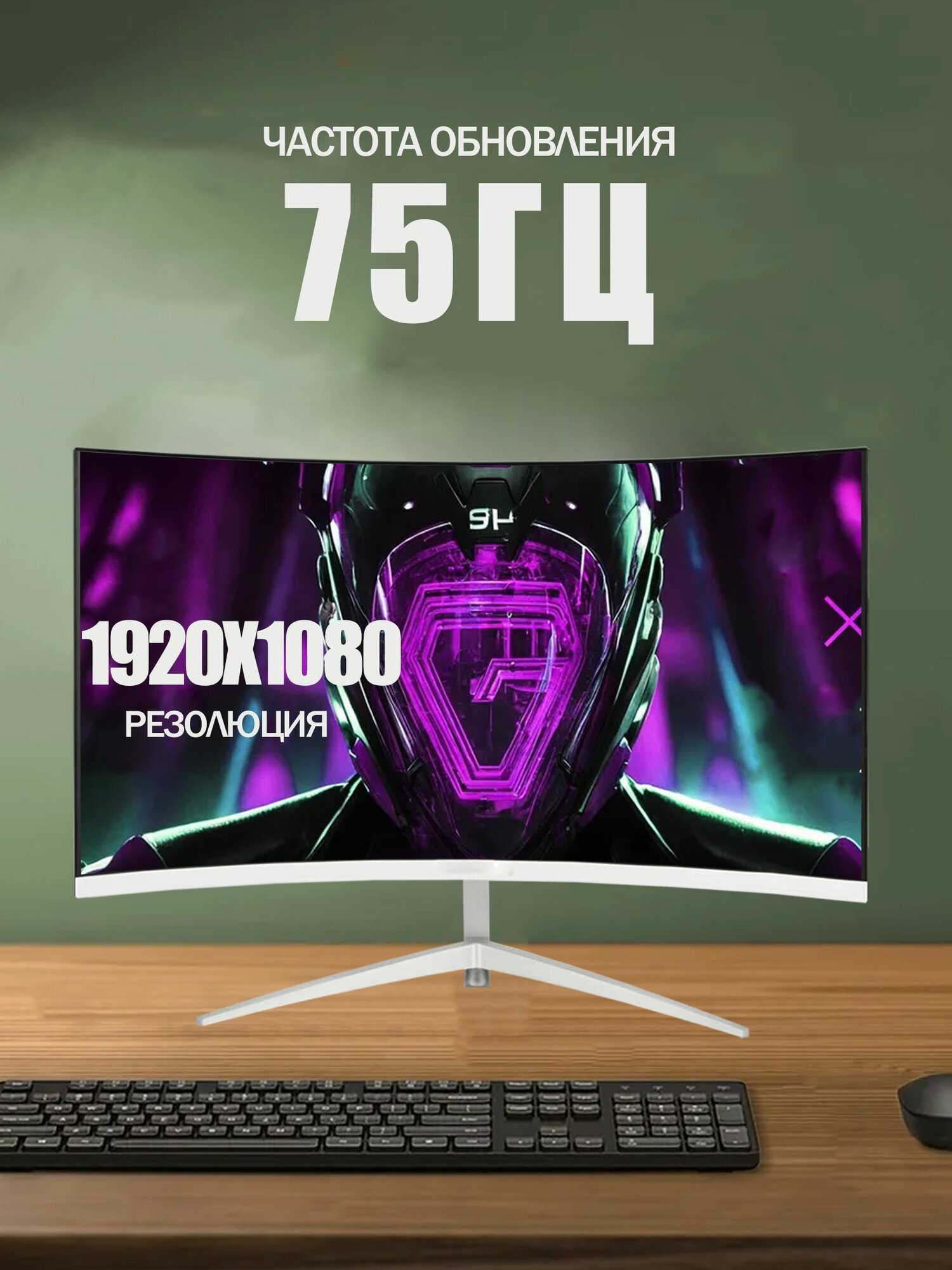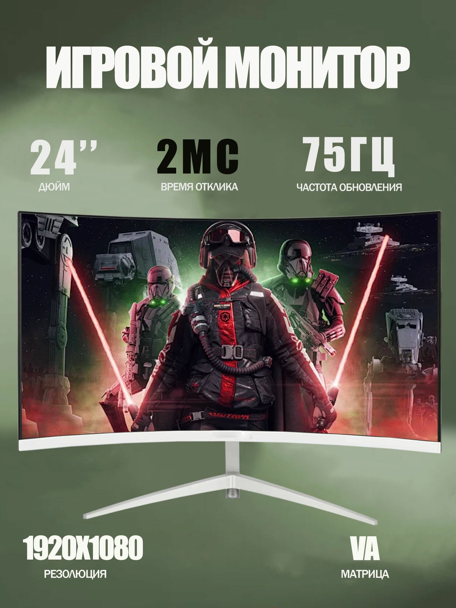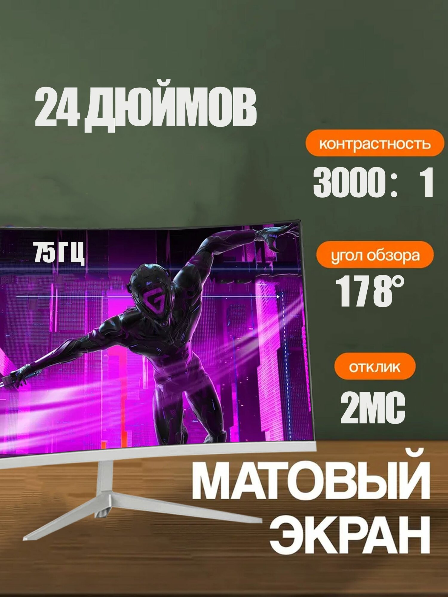 24"Монитор, Игровые мониторы для ПК,75 Гц, Изогнутые сита, разрешение 1920*1080, интересное: