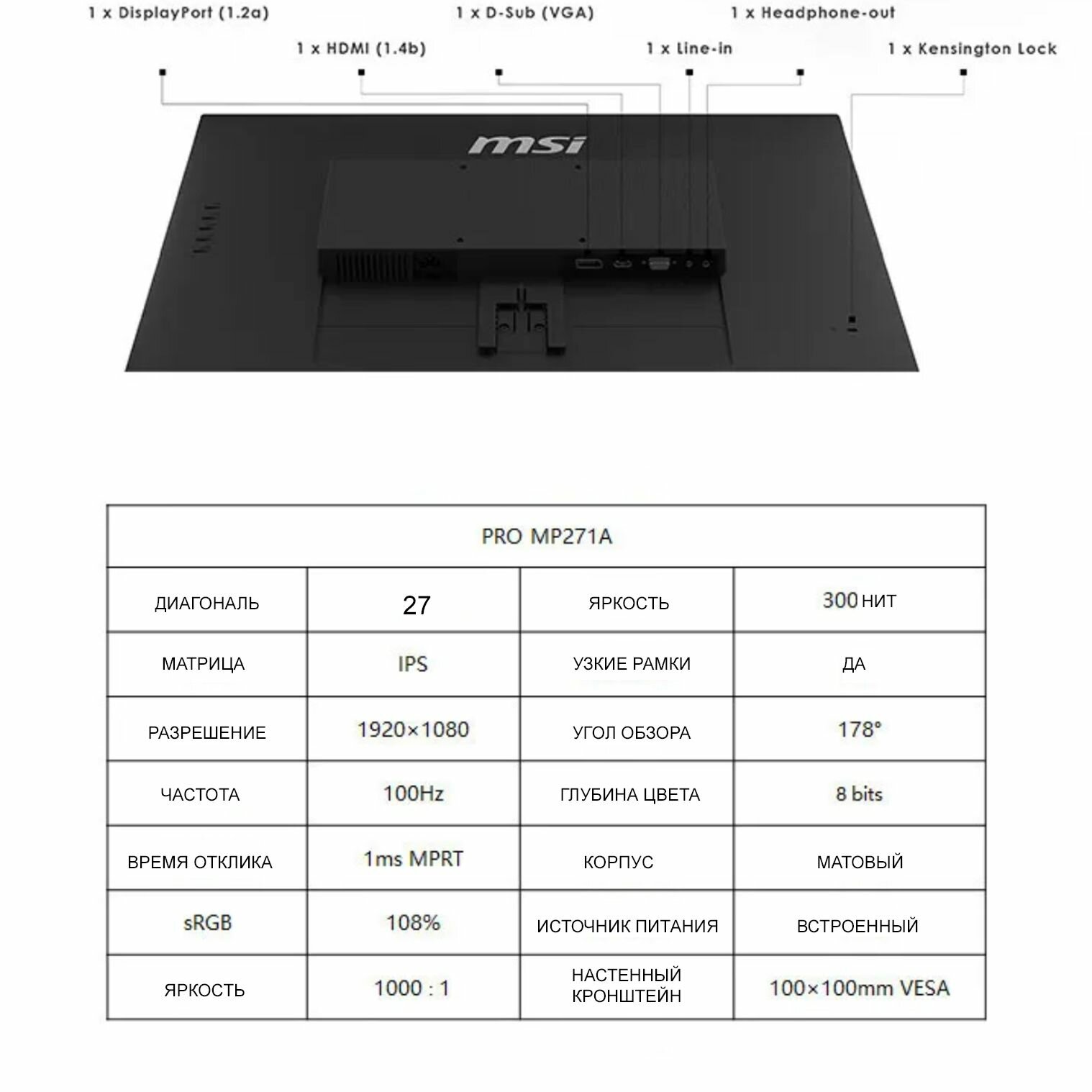 Ниже Вы можете прочитать отзывы на Монитор MSI MP271A с дтиагональю "27" и частотой 100Hz матовое покрытие, ознакомится с подробными характеристиками, посмотреть интересные обзоры и фотографии на Монитор MSI MP271A с дтиагональю "27" и частотой 100Hz матовое покрытие.