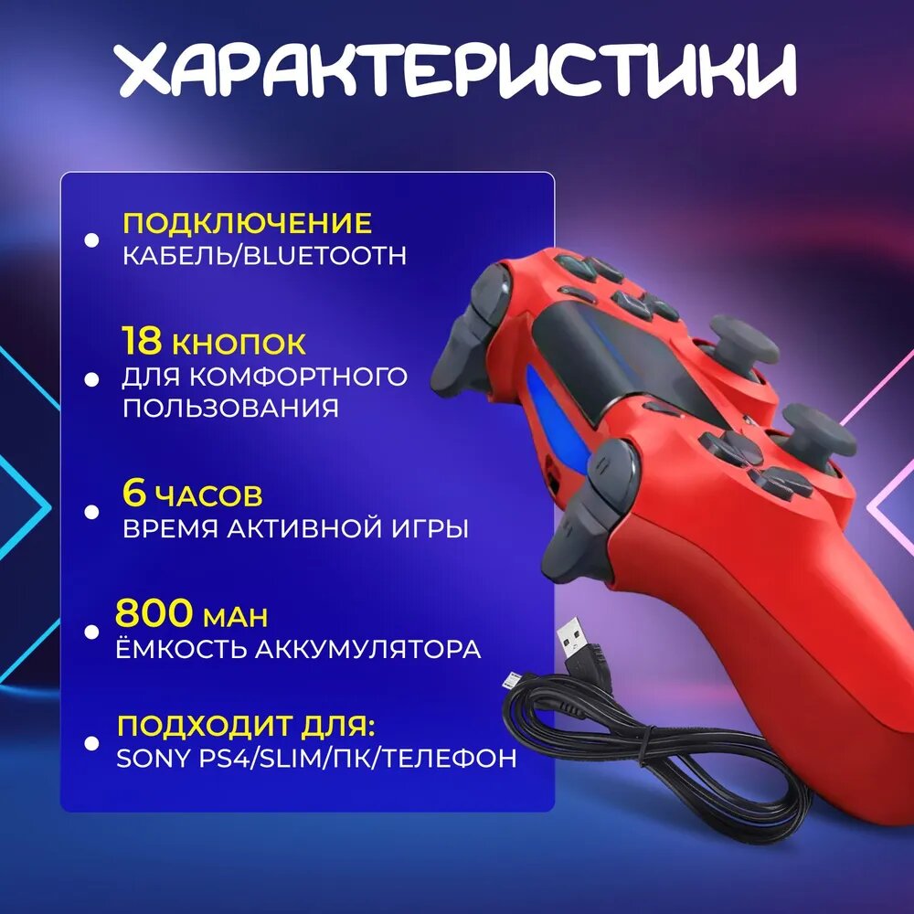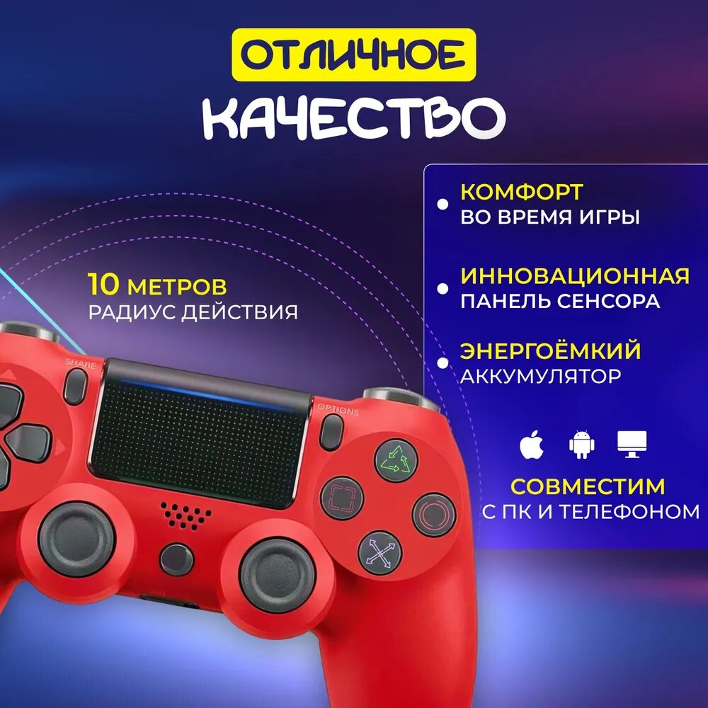 Красный Геймпад для Play Station 4 DualShock 4 / Wireless Controller / Джойстик для PS4 интересное: