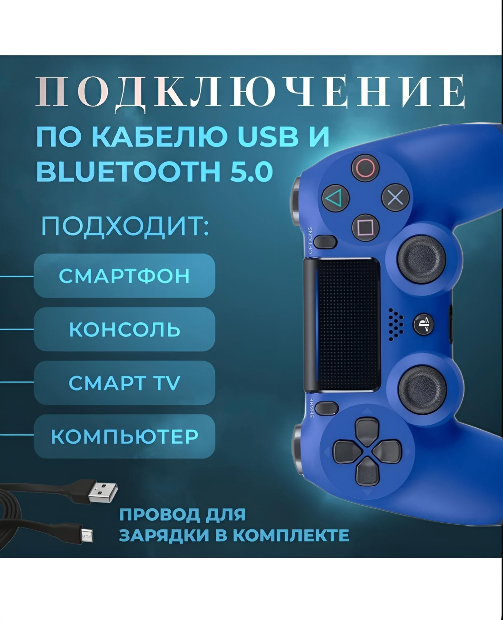 СохранитьДжойстик / геймпад беспроводной для PS4, компьютера, телефона, ПК. Синий. интересное: