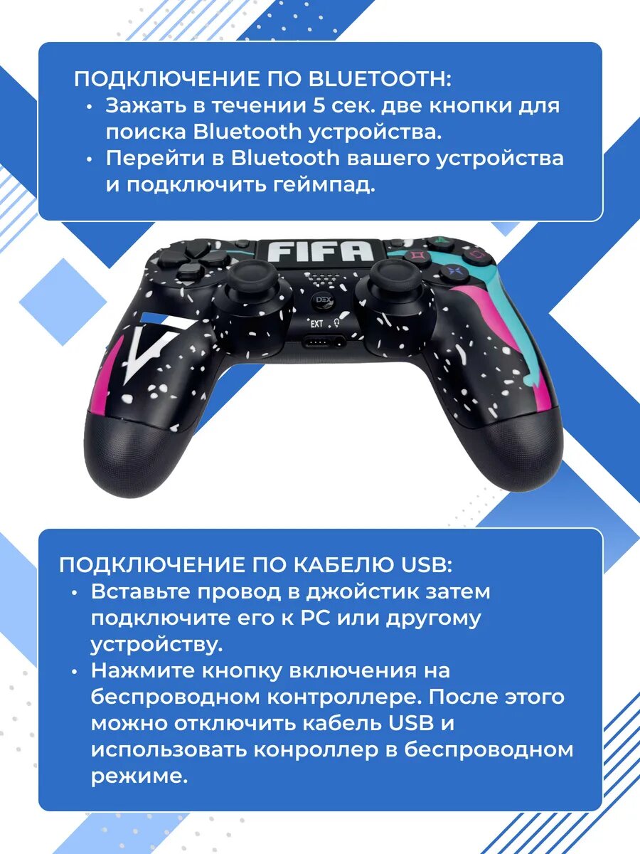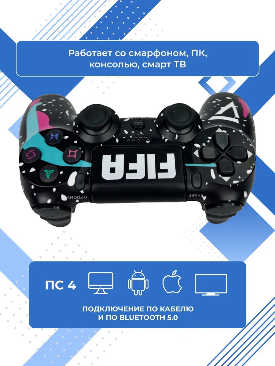 СохранитьГеймпад (джойстик) для PS4/ПК/Android/iOS, беспроводной, Bluetooth, с гироскопом, черный FIFA интересное: