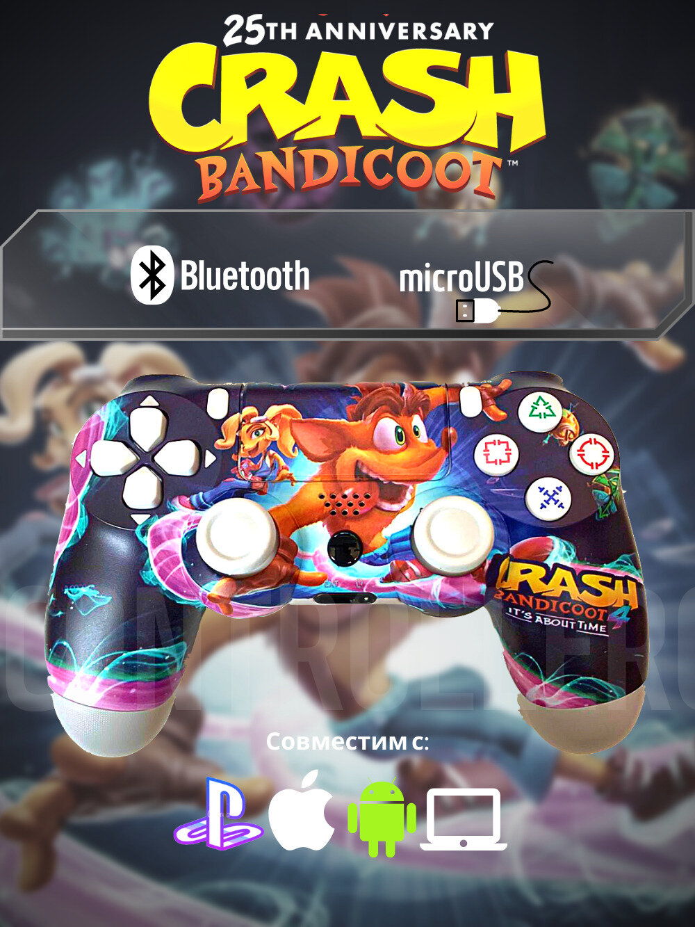 Джойстик, Геймпад Dualshok 4 для игровой приставки Sony Playstatoin 4 , смартфона, ПК (Краш Бандикут) интересное: