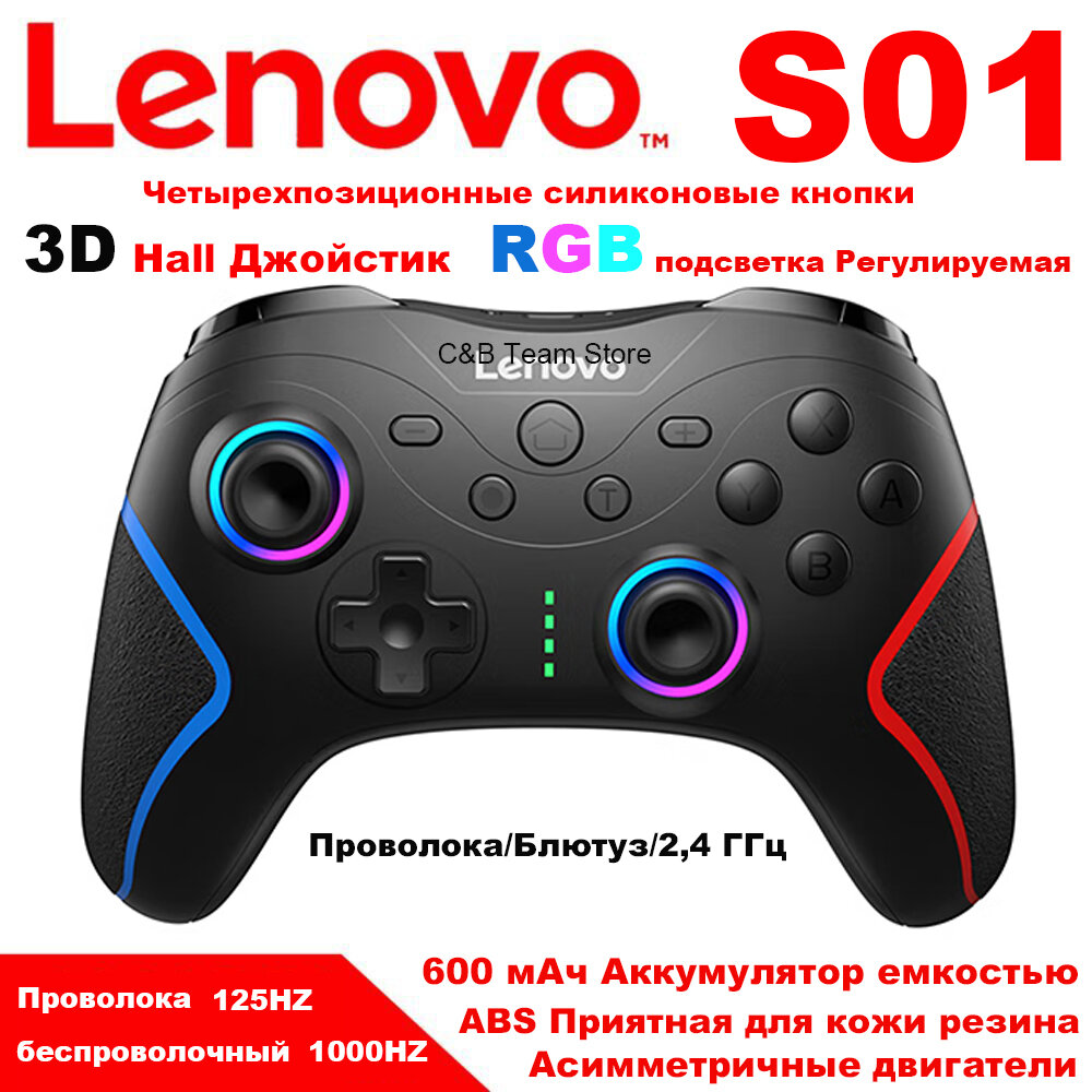 Геймпад Lenovo S01, 2.4 ГГц/Bluetooth, RGB-подсветкой, асимметричные двигатели, джойстик интересное:
