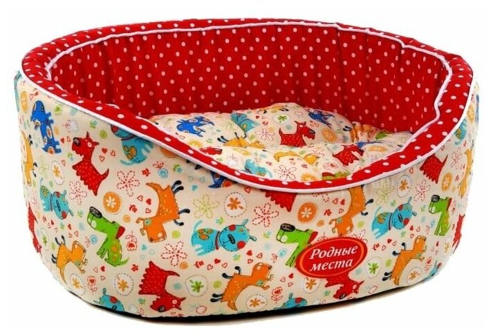Лежак для собак Родные Места Премиум №2 Собачки с красным горошком, размер 49х43х17см.