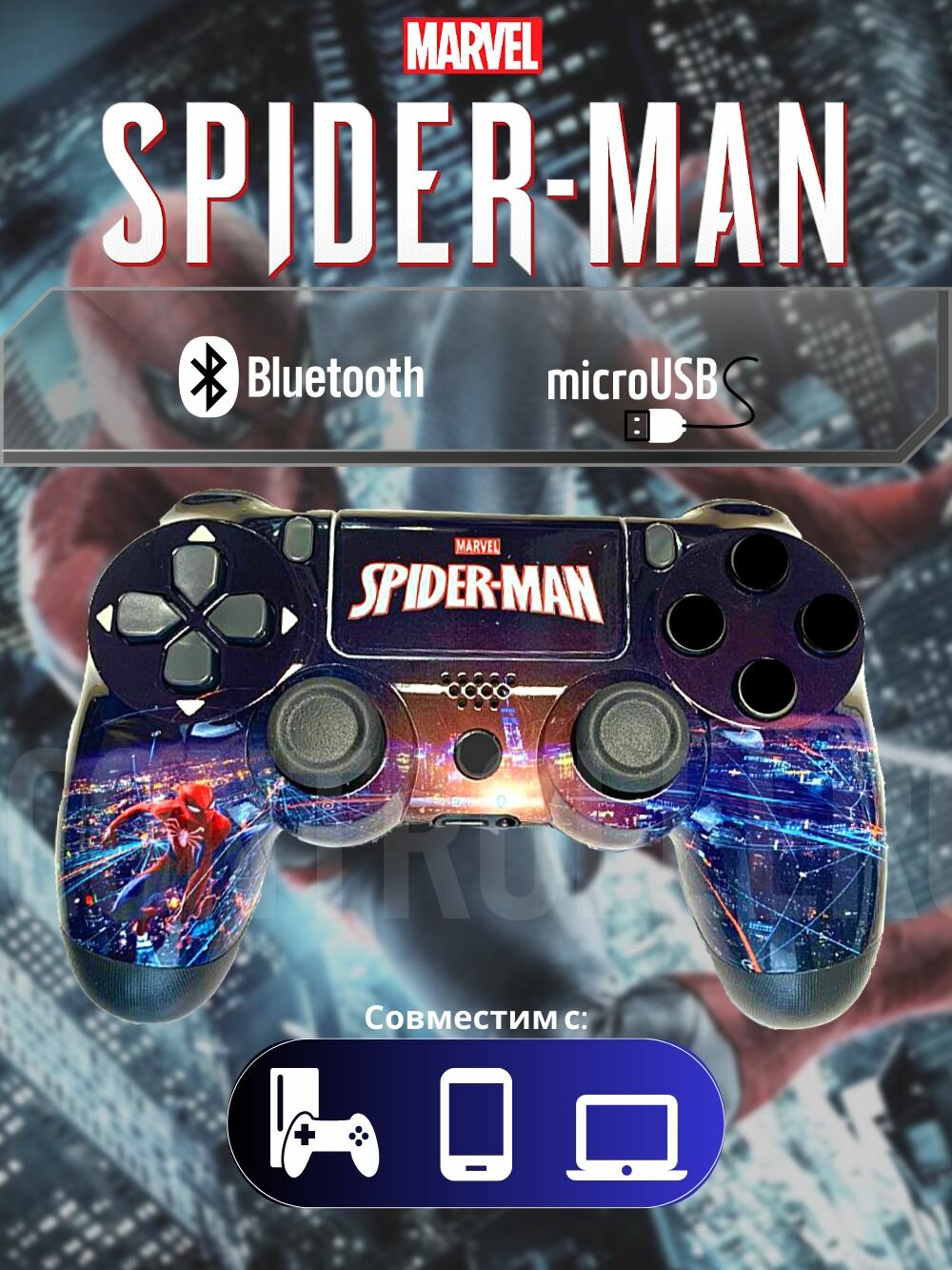 Беспроводной геймпад для игровой приставки ПС4, смартфона и ПК, Человек Паук NEW