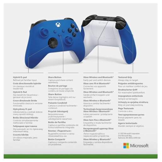 Купить Геймпад беспроводной Microsoft Xbox Series X/S QAU-00009, shock blue, оригинал, гарантия 12 мес.