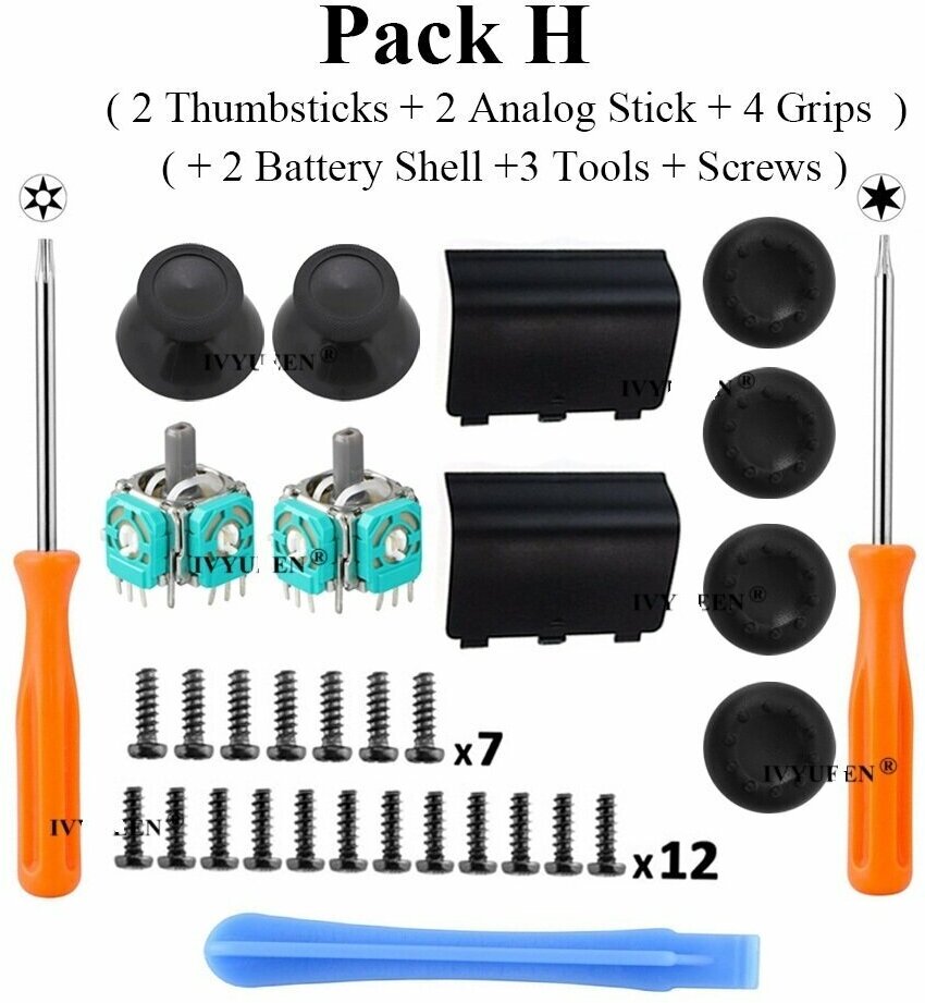 2 стиков грибков + 2шт 3d analog + 2 крышки + 4 накладки + винты + 2 отвертки torx 6 torx 8 + инструмент для геймпада xbox one / series S X набор H интересное: