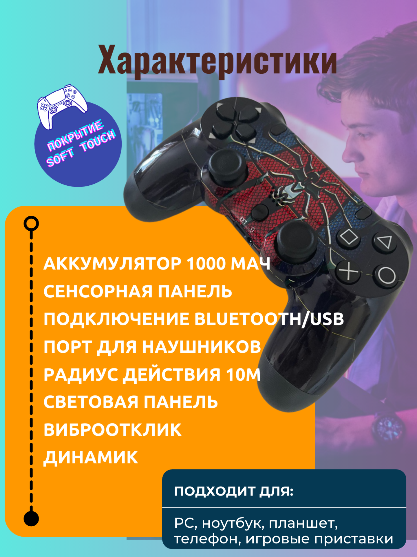 Ниже Вы можете прочитать отзывы на Беспроводной геймпад для PS4 с зарядным кабелем, Bluetooth / Джойстик для PS и ПК, ознакомится с подробными характеристиками, посмотреть интересные обзоры и фотографии на Беспроводной геймпад для PS4 с зарядным кабелем, Bluetooth / Джойстик для PS и ПК.