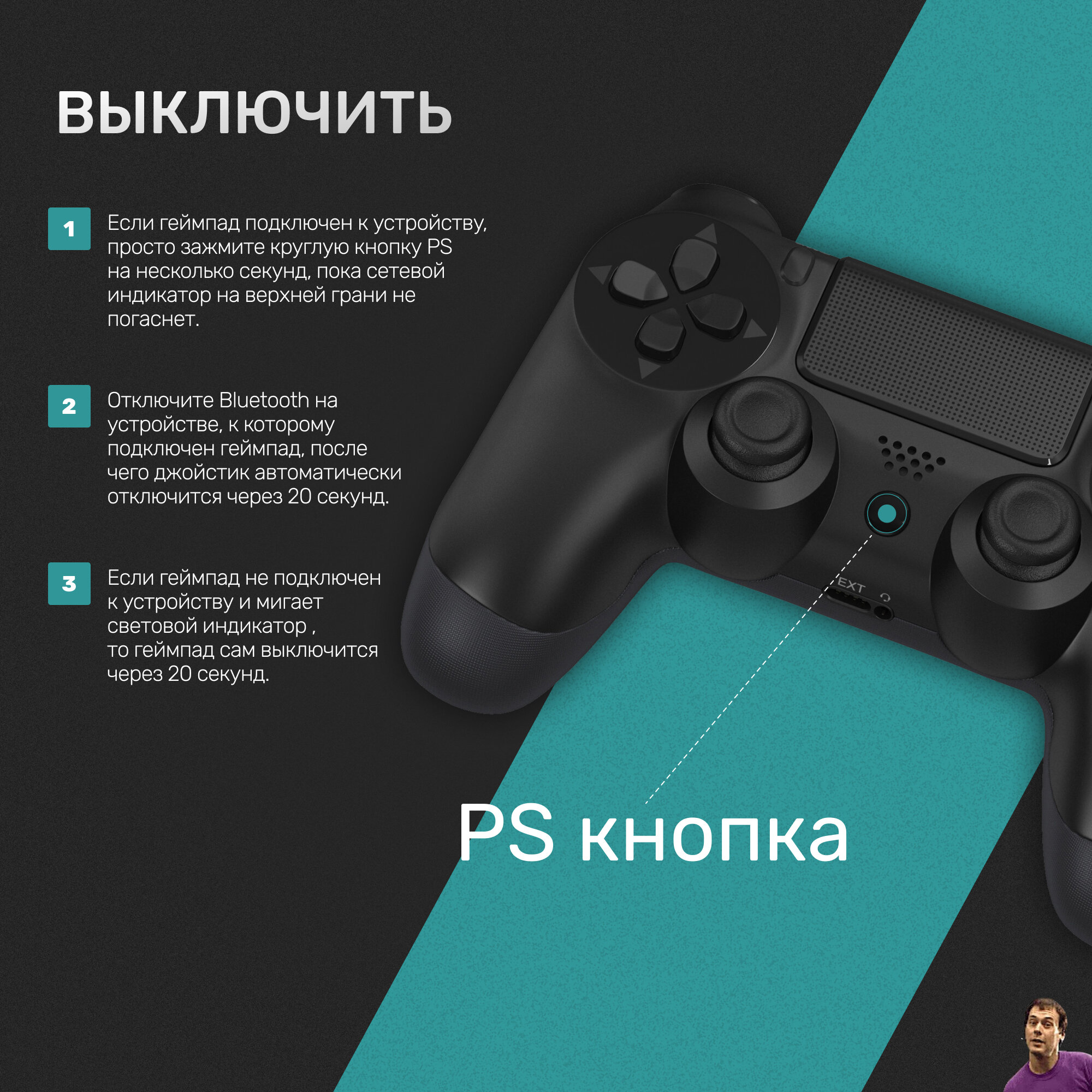 Беспроводной геймпад для PS4/ПК/телефона с Bluetooth, бирюзовый