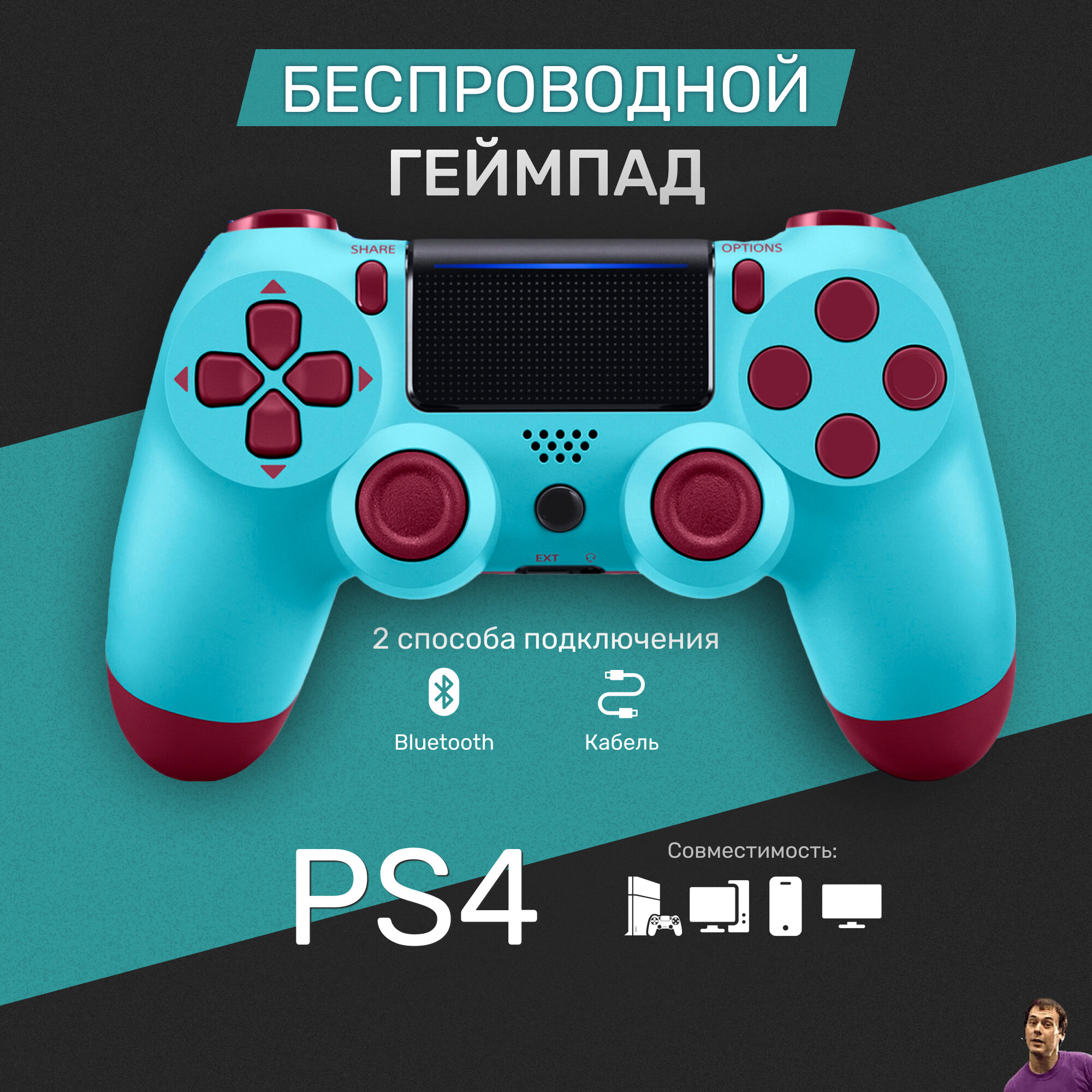 Ниже Вы можете прочитать отзывы на Беспроводной геймпад для PS4/ПК/телефона с Bluetooth, бирюзовый, ознакомится с подробными характеристиками, посмотреть интересные обзоры и фотографии на Беспроводной геймпад для PS4/ПК/телефона с Bluetooth, бирюзовый.