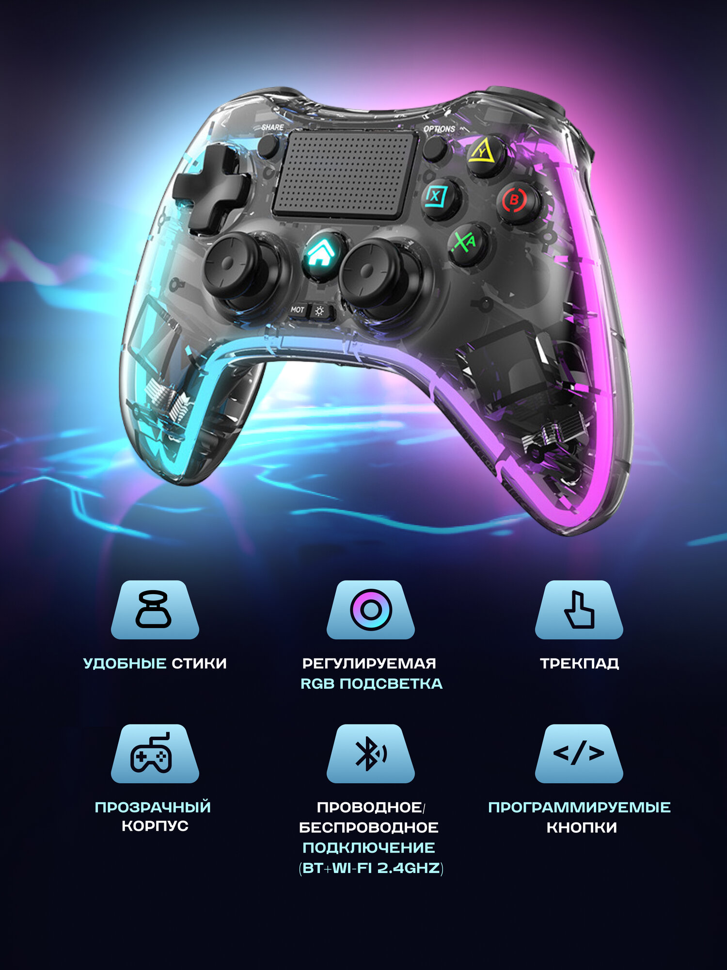 Купить Беспроводной геймпад для телефона/ПК/PS3/PS4 с держателем и адаптером