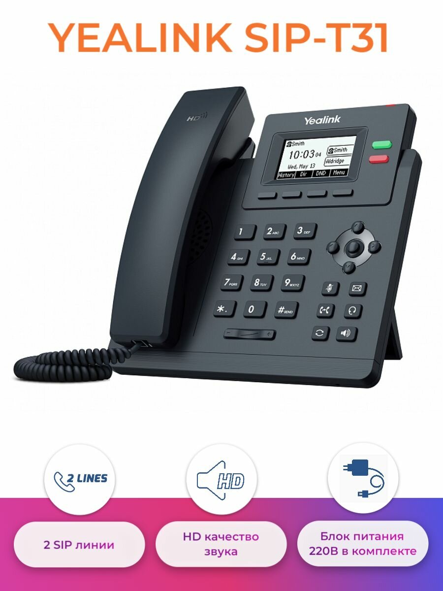 IP телефон Yealink SIP-T31 (БП в комплекте) интересное: