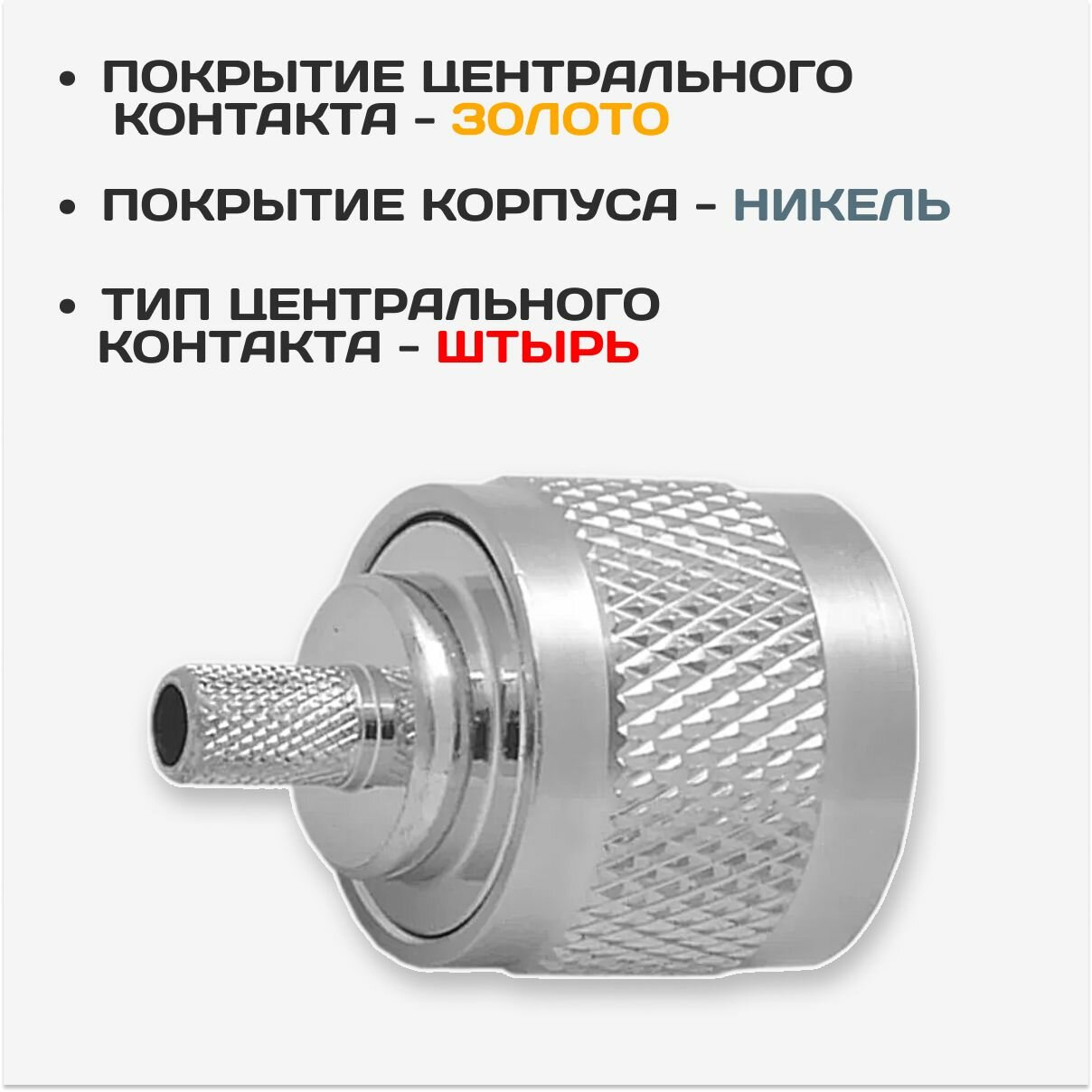 Купить ВЧ-разъём N-111/5D / Прямой обжимной штекер / N-male для кабеля 5D-FB