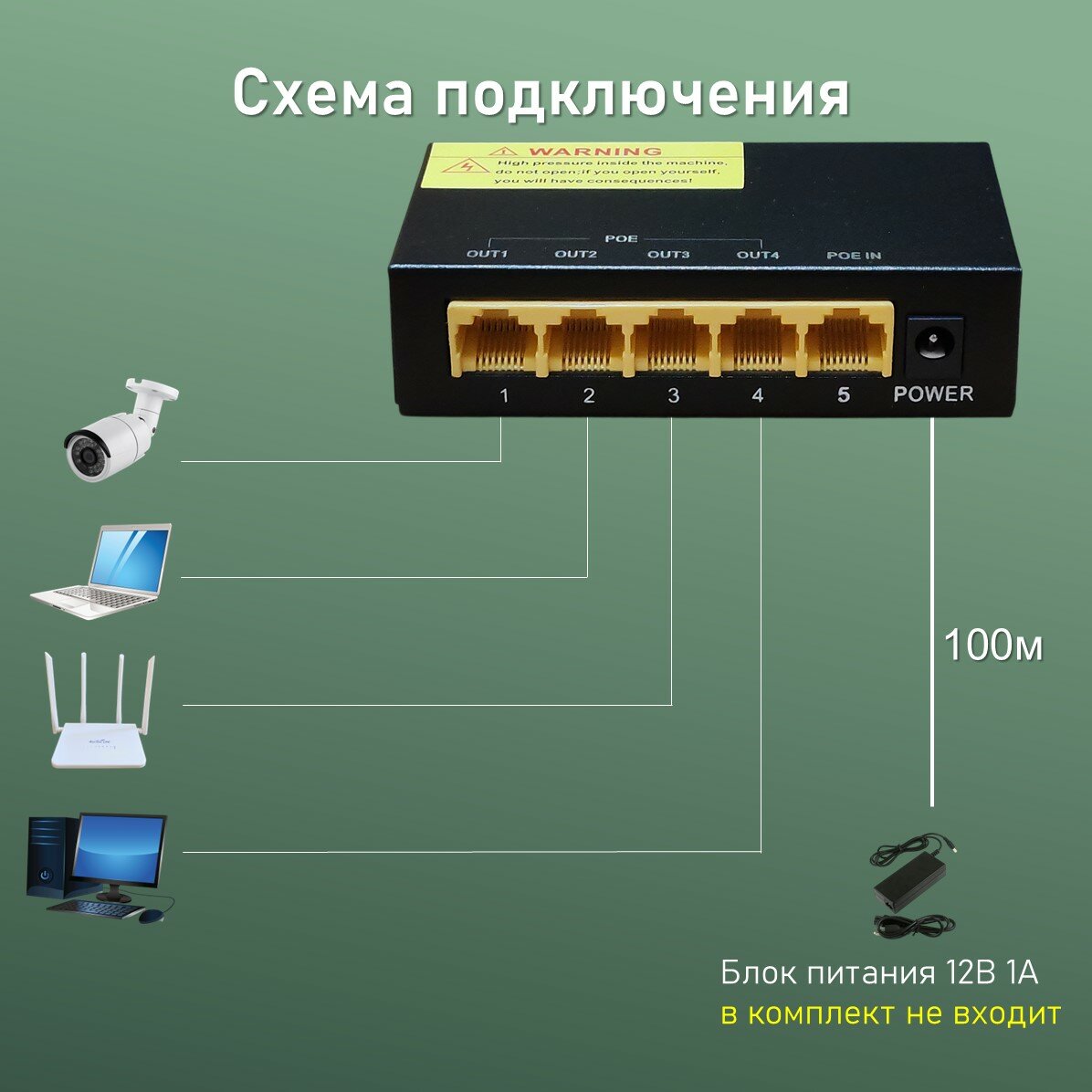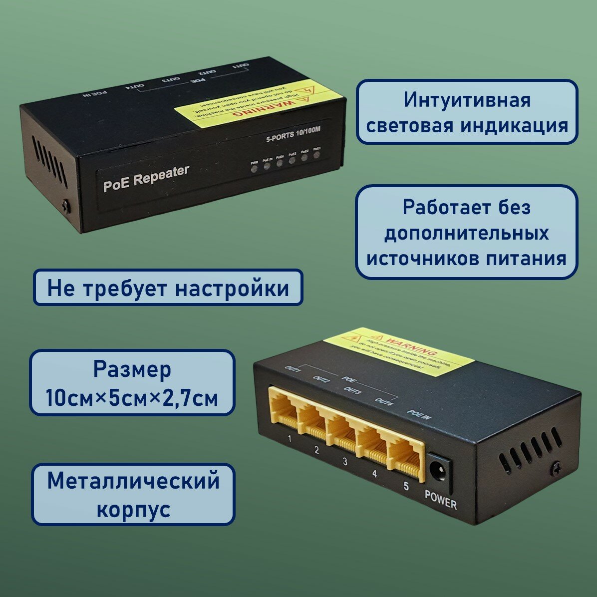 Купить YDA PoE-инжектор удлинитель - разветвитель, работает от POE, 1 POE вход - 4 POE выхода, бюджет мощности 60 Вт