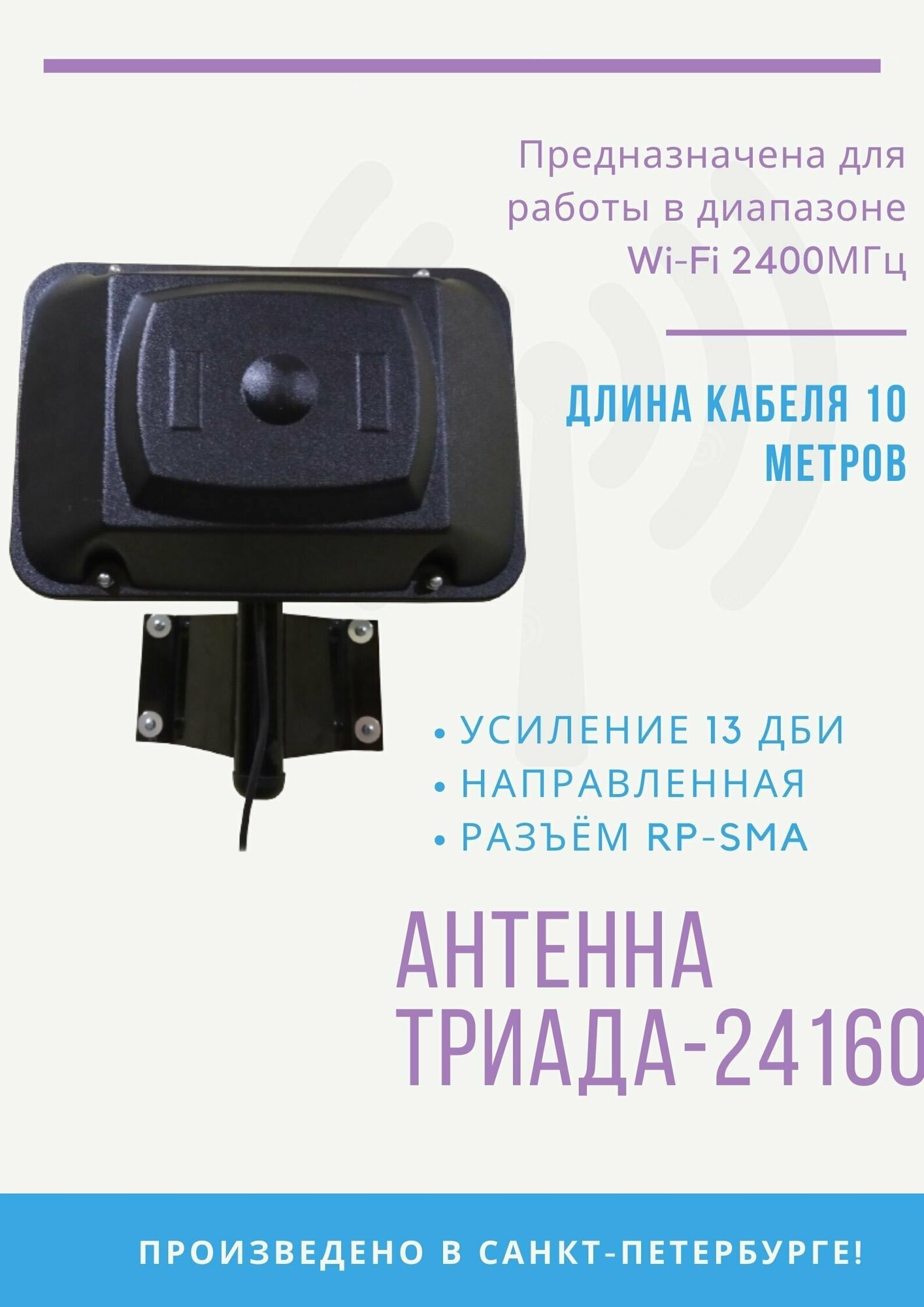 Направленная антенна на кронштейн Триада-24160 WiFi, кабель 10 м RG58A/U, разъем PR-SMA интересное: