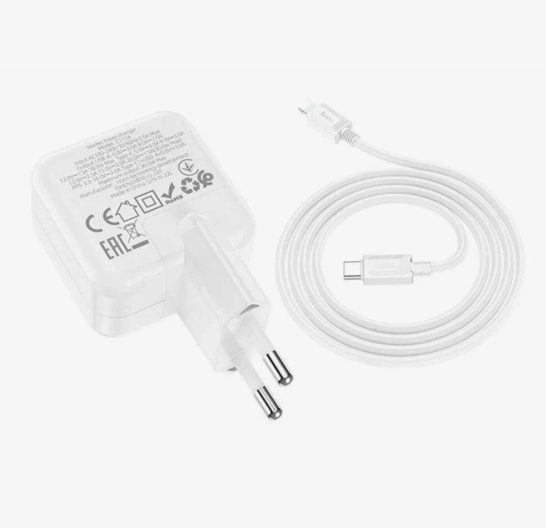 Купить Блок питания сетевой 1 USB, Type-C HOCO C111A, Lucky, QC3.0, PD 30Вт, цвет: белый