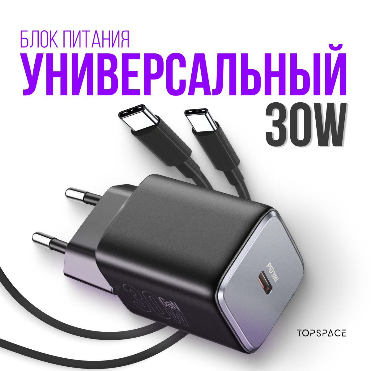 Блок питания черный 30W + кабель Type-C / Type-C до 60W 1 метр интересное: