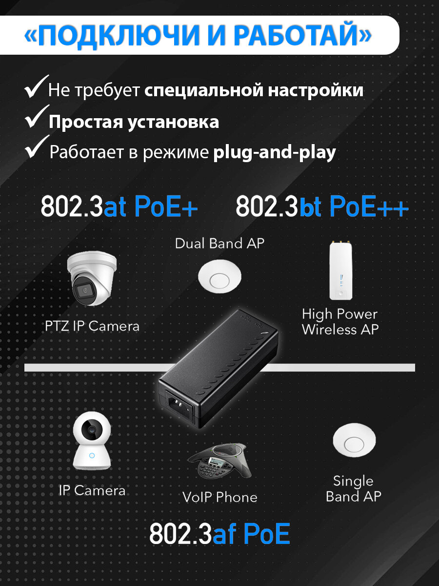 Гигабитный PoE++ инжектор CUDY POE300, до 60Вт, с одновременным обменом данными на скорости до 10/100/1000 Мбит/сек интересное: