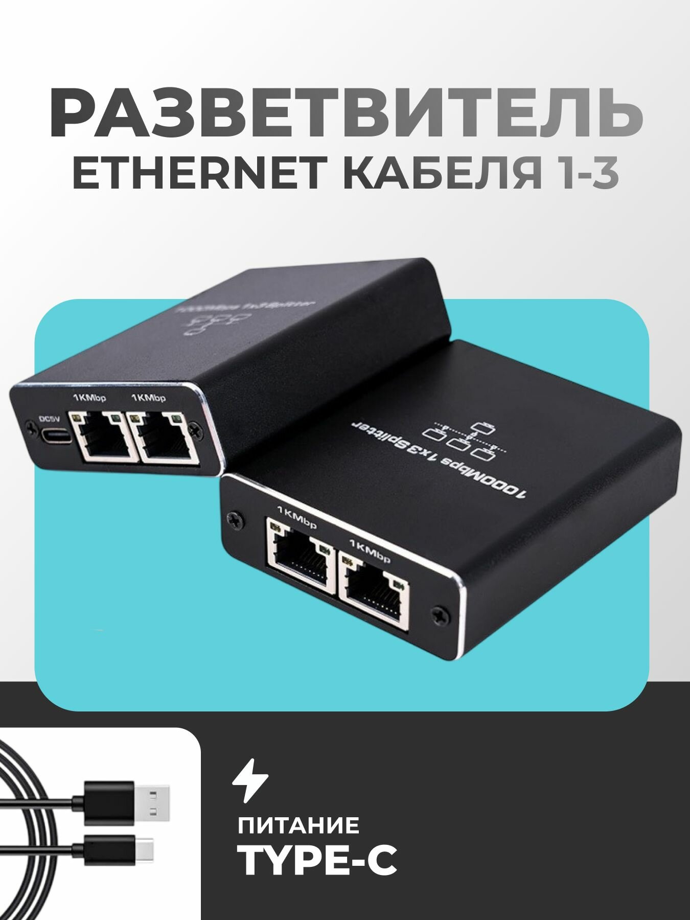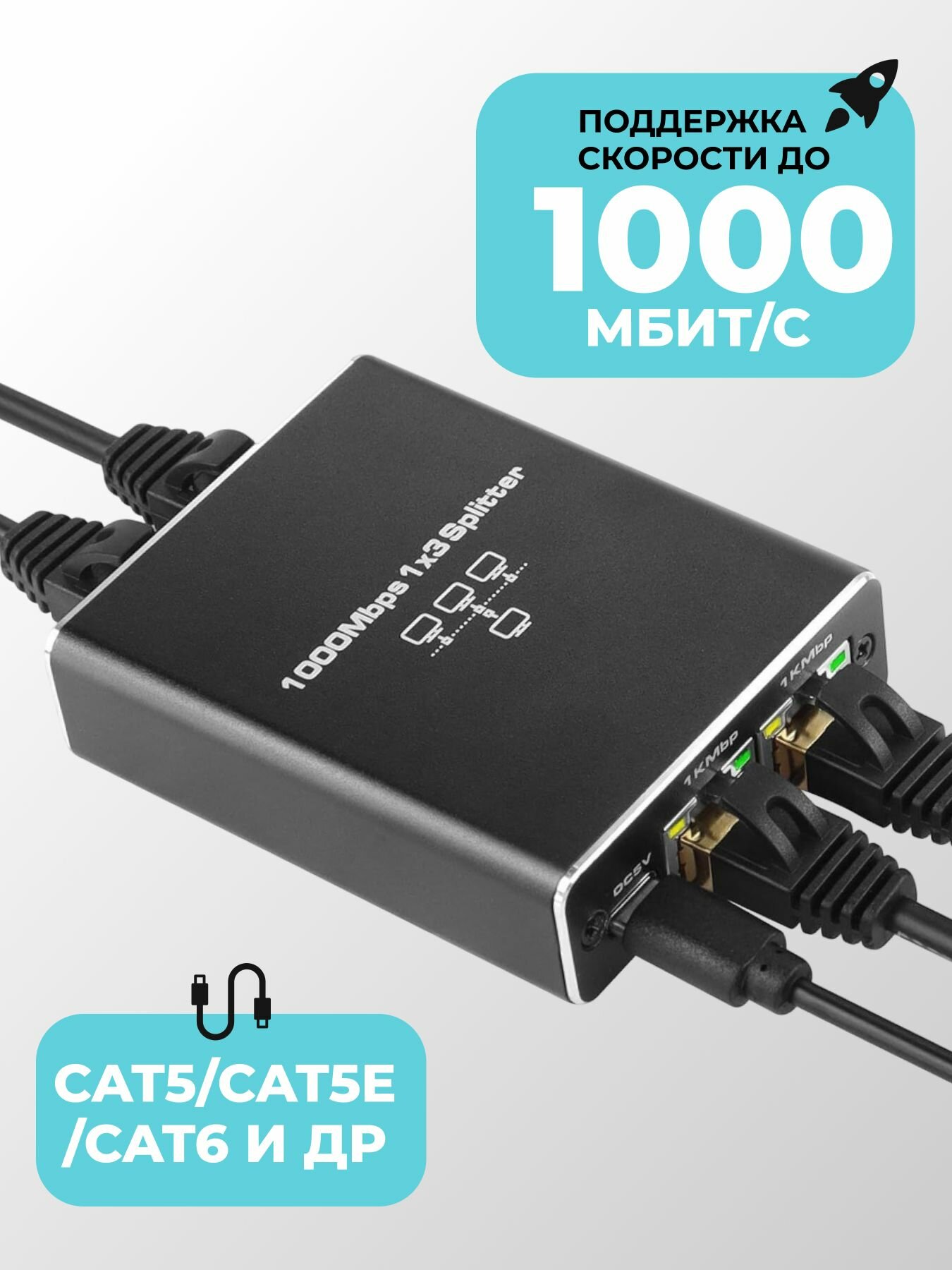 Разветвитель для интернет кабеля Ethernet витой пары RJ45 1-3 1000 мб/с сплиттер интересное: