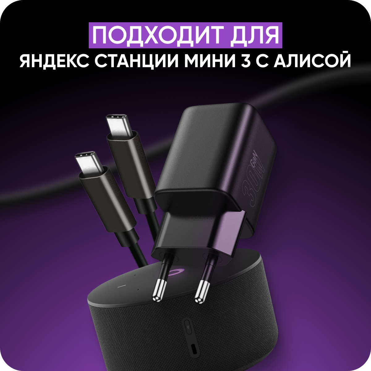 Зарядка черная с кабелем для Умной колонки Мини 3 с Алисой (блок 30W шнур Type-C / Type-C до 60W 1 метр) интересное: