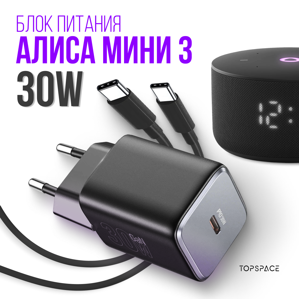 Зарядка черная с кабелем для колонки Алиса Станция Мини 3 (блок 30W + шнур Type-C / Type-C до 60W 1 метр) интересное: