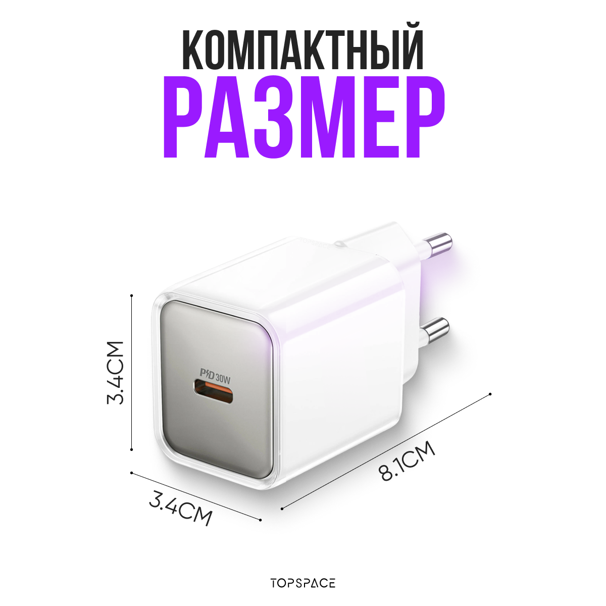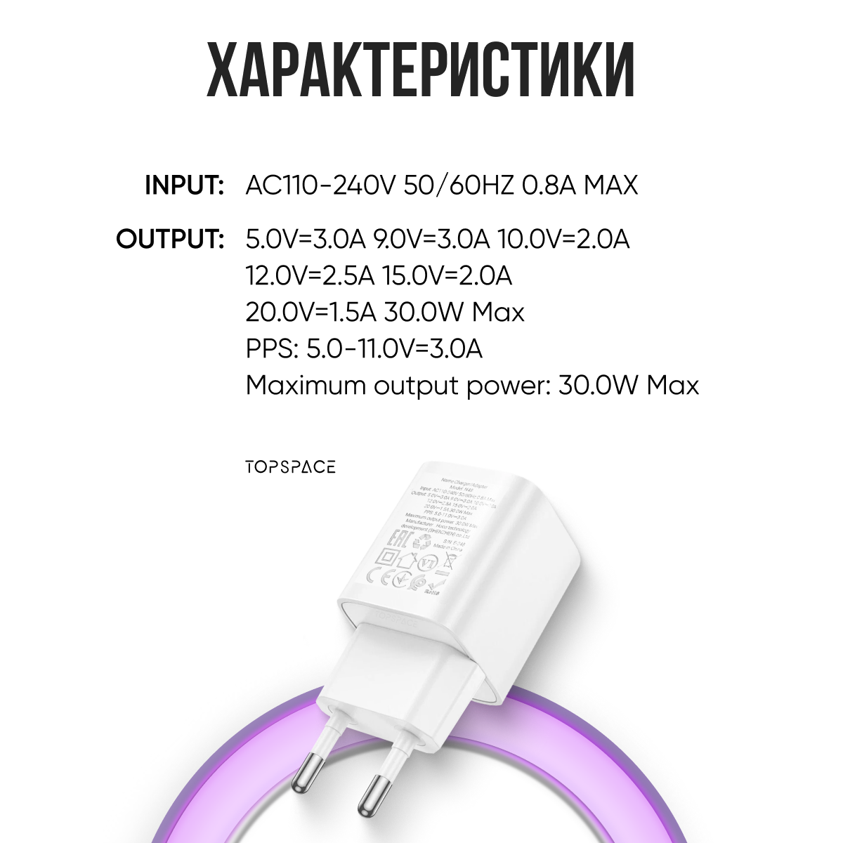 Зарядка белая с кабелем для Умной колонки Алиса Станция Мини 3 (блок 30W + шнур Type-C / Type-C до 60W 1 метр)