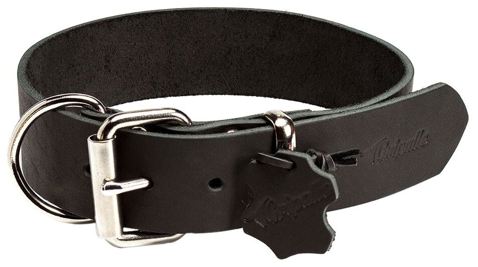 Ошейник кожаный GRIPALLE Кевин, натуральная кожа, стальная фурнитура, размер: ширина 40 мм, длина 50 см, цвет черный, упакован в полиэтиленовый пакет интересное: