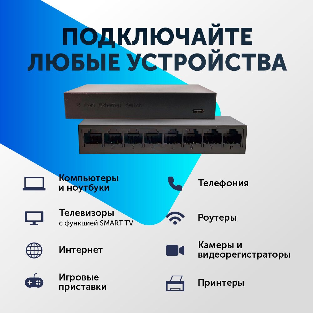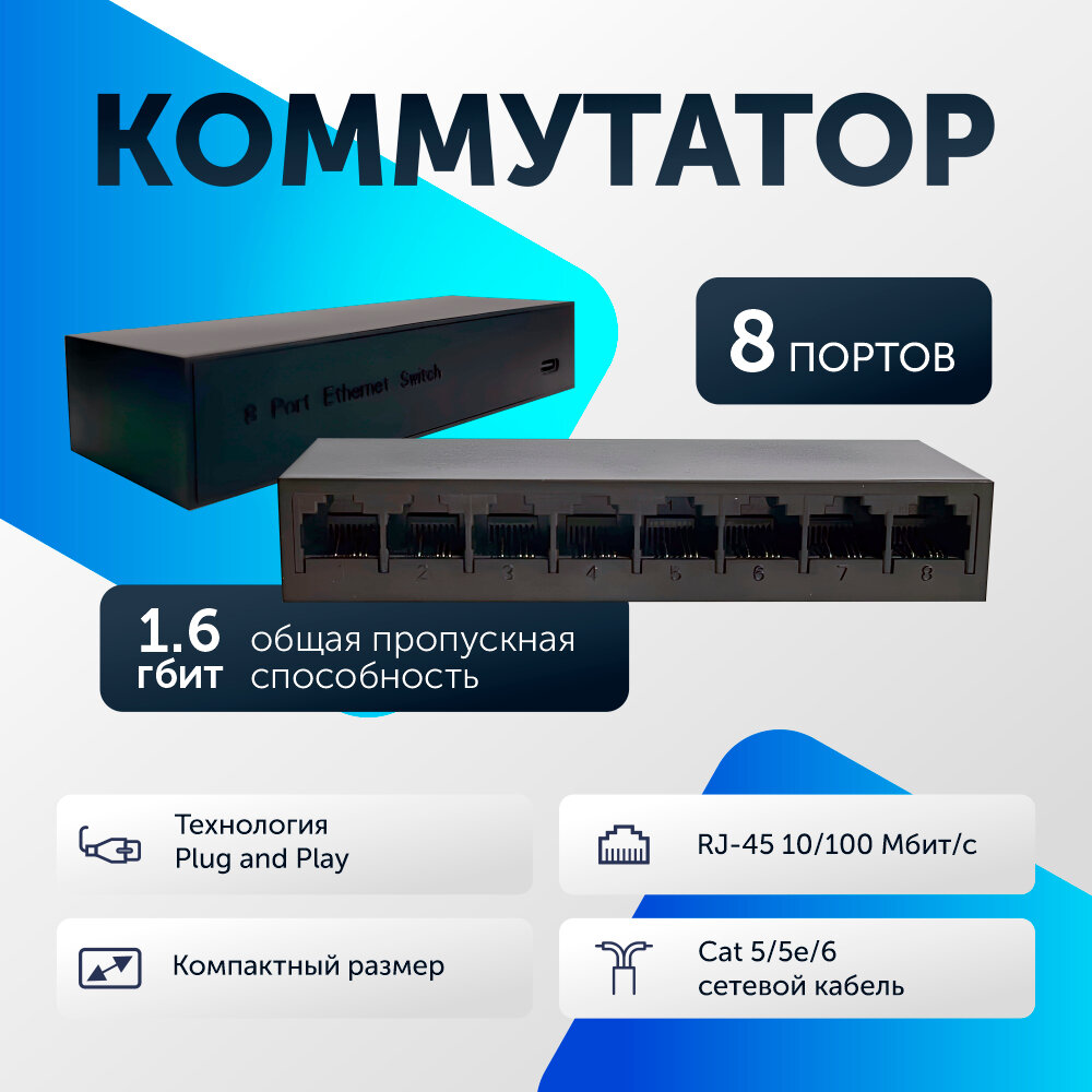 Коммутатор неуправляемый (свитч) 8 портов 10/100 Мбит/с RJ-45 интересное: