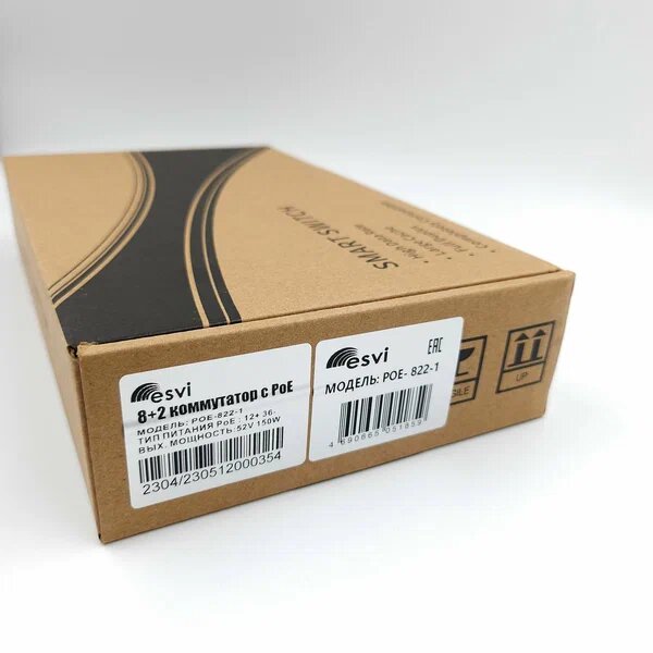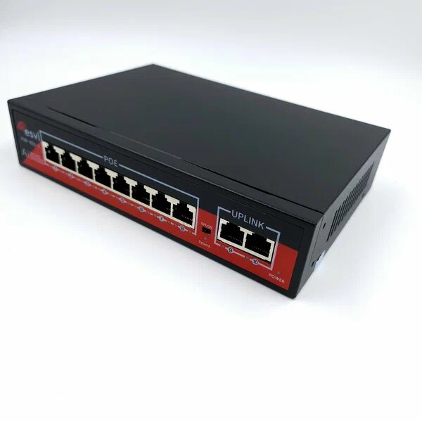 Коммутатор ESVI POE-822-1 8 портов POE + UPlink 2 порта для видеонаблюдения, металлический корпус. интересное: