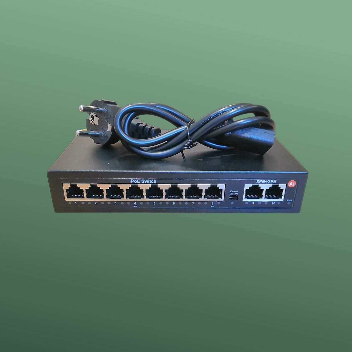 Купить YDA Коммутатор POE свитч с 8POE +2Uplinк 100 Мбит/с , дальность до 250 метров, бюджет 120 Ватт, черный