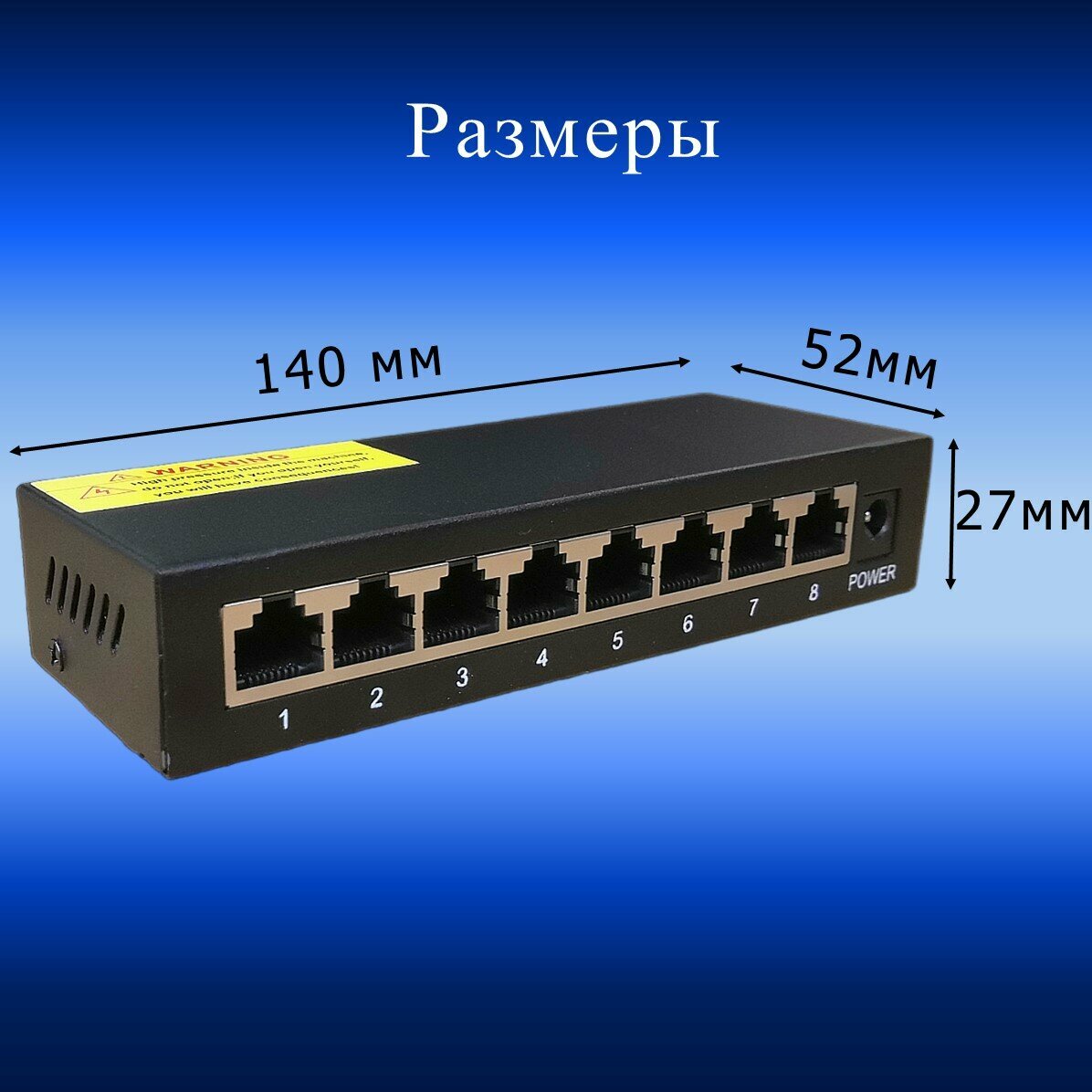 Коммутатор сетевой 8 портов, скорость портов 10/100/1000 Мбит/с, питание 12В 1А, металлический корпус интересное: