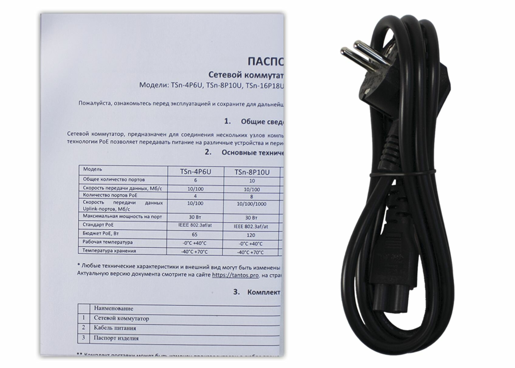 Коммутатор POE Tantos 4 x 100 Мбит/с PoE порта + 2 x 100 Мбит/с порта Uplink интересное: