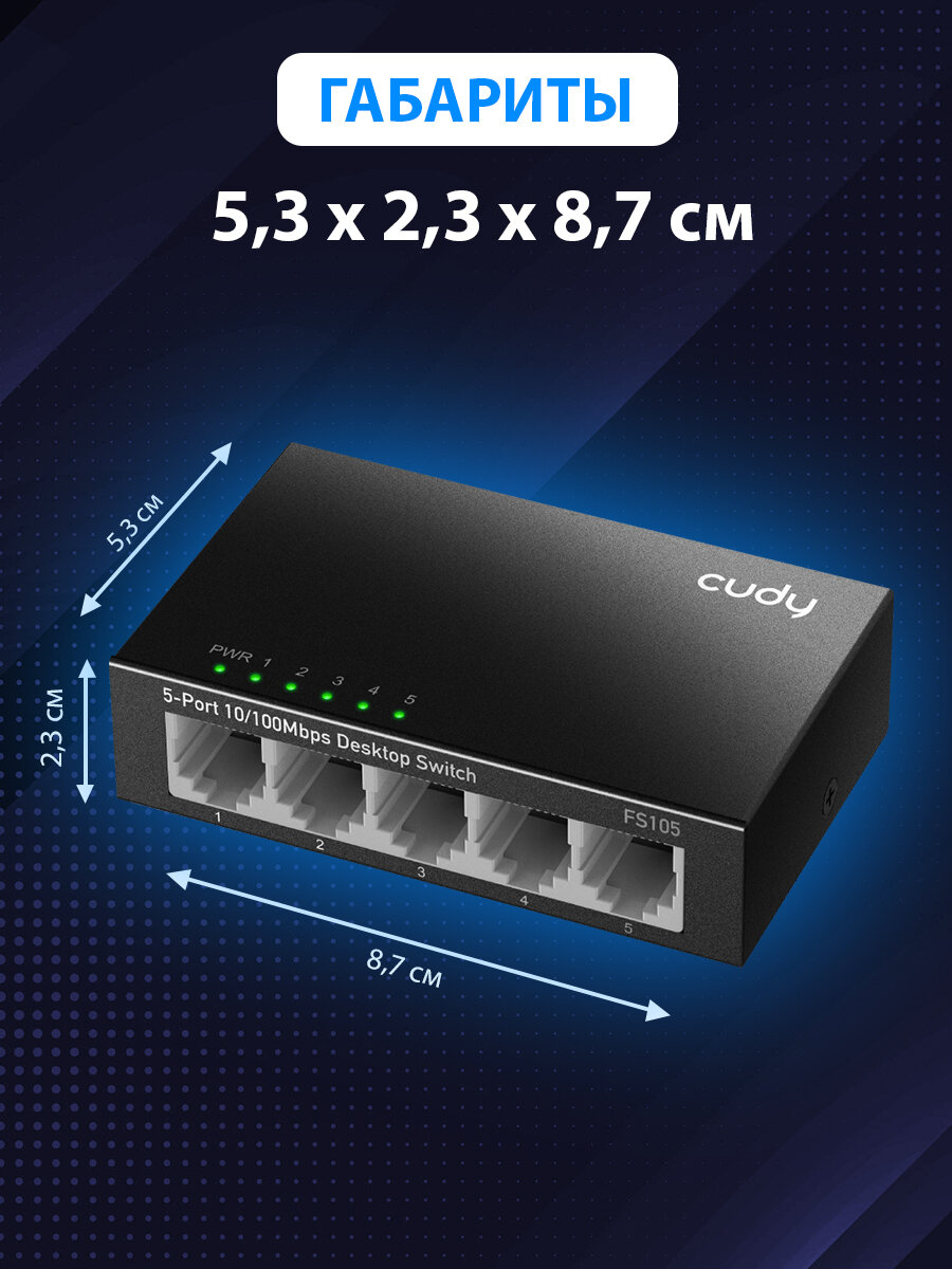 Коммутатор CUDY FS105 черный, неуправляемый, 5-портовый 10/100 Мбит/сек интересное: