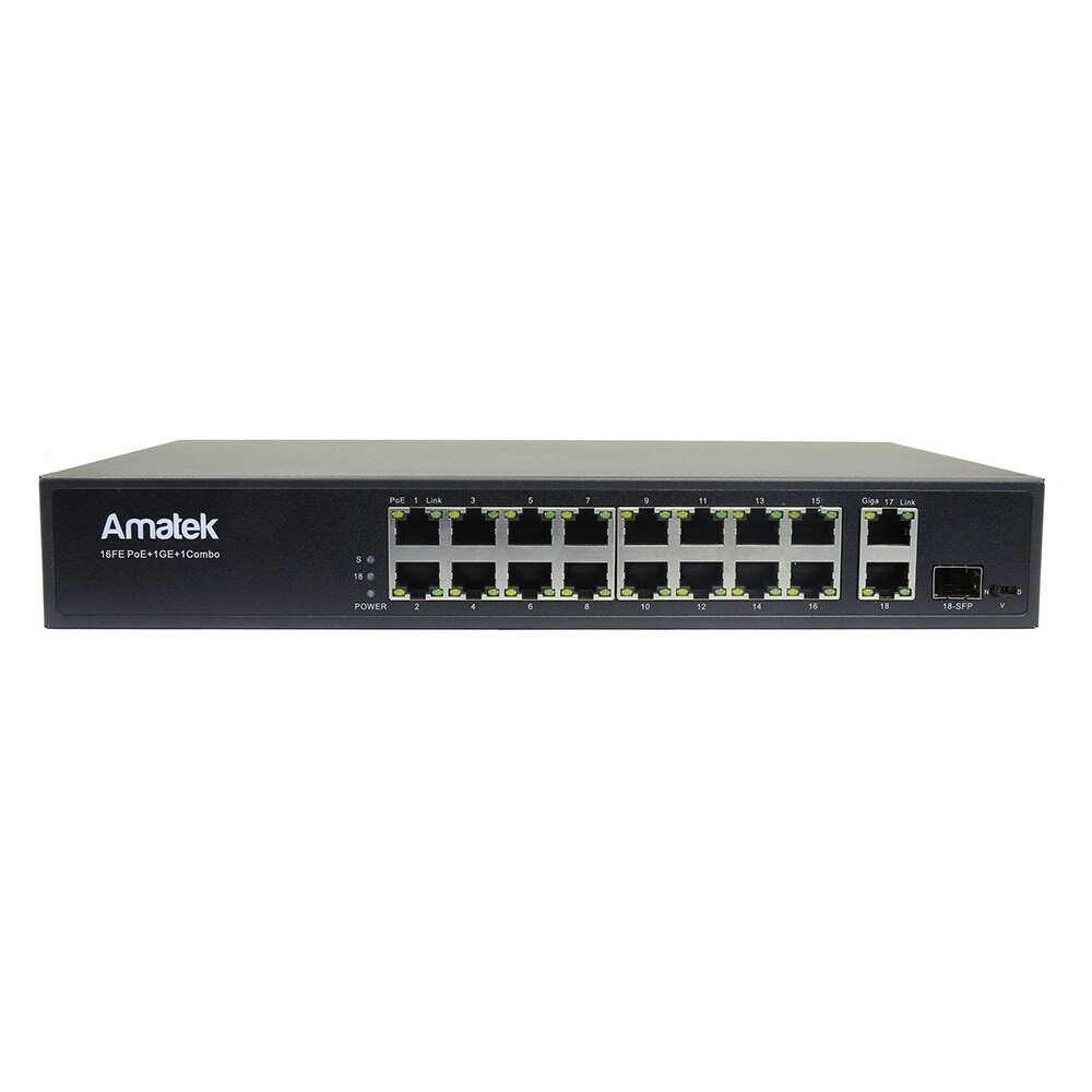 Купить AN-S18P16-300 Amatek 18-портовый 100/1000 Мбит/с коммутатор с PoE до 300Вт