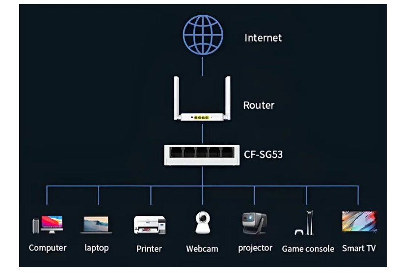 Коммутатор COMFAST Five Port Switch 1000Mbps (CF-SG53) интересное: