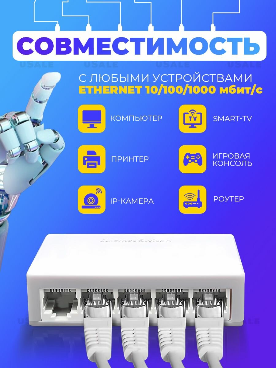Купить Гигабитный Коммутатор 5 портовый 10/100/1000мбит.10гбит общая пропускная спобосность