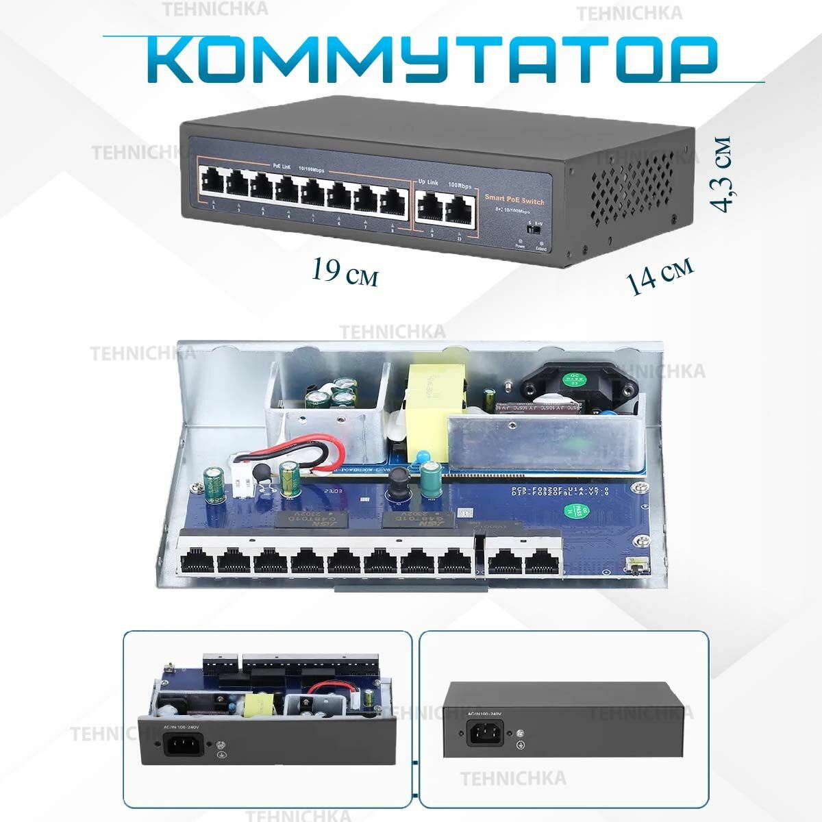 Коммутатор TEHNICHKA 8POE + 2Uplink интересное: