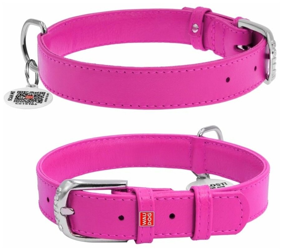 Ошейник WAUDOG Glamour без украшений (ширина 20мм, длина 30-39см) розовый (1 шт)