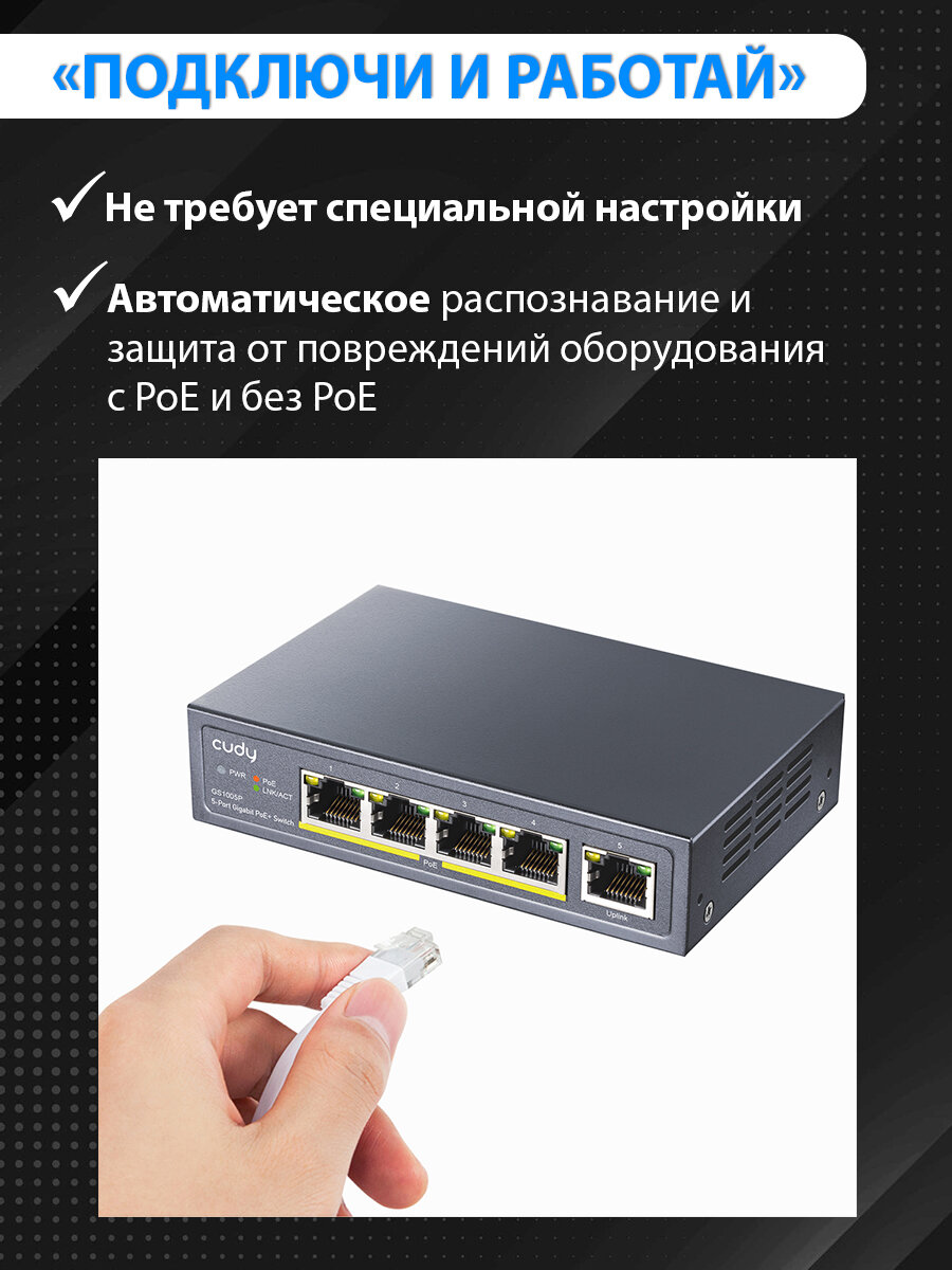 Сетевой коммутатор CUDY GS1005P интересное: