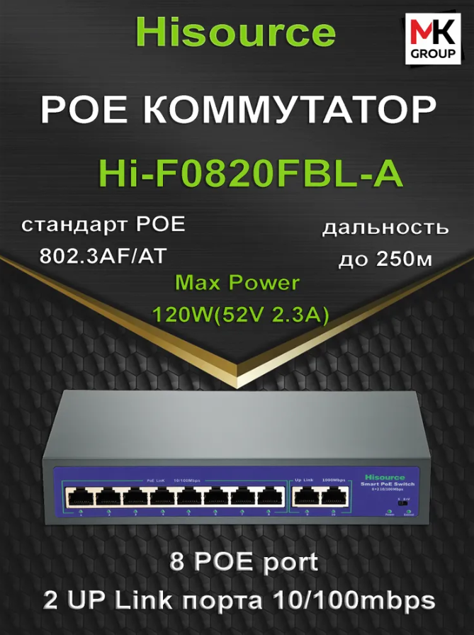Коммутатор Hisource "Hi-F0820FBL-A", PoE, неуправляемый, 100Мбит/с интересное: