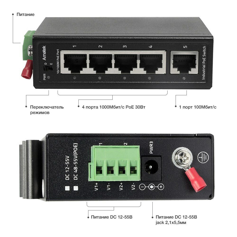 Коммутатор PoE Amatek AN-SX5P4 7000631 интересное: