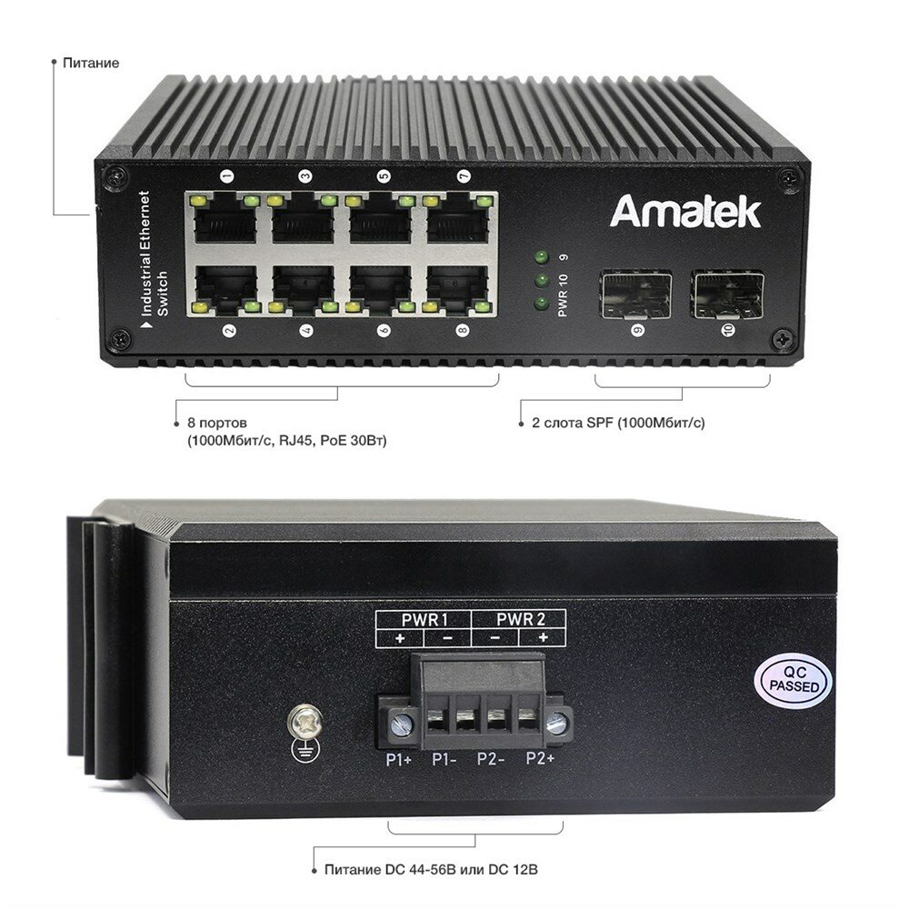 Коммутатор промышленный Amatek AN-SXG10P8A 10 портов 7000658 интересное: