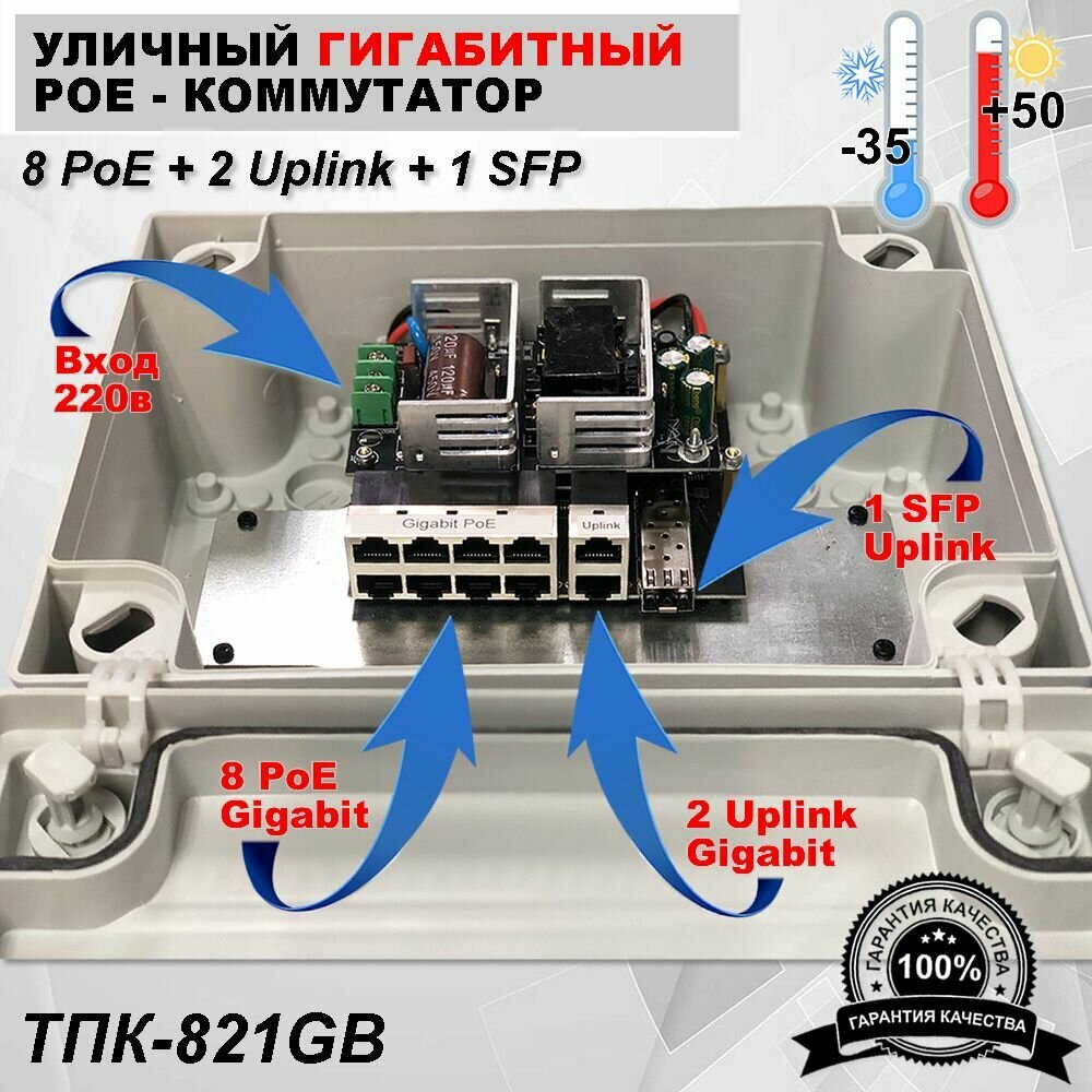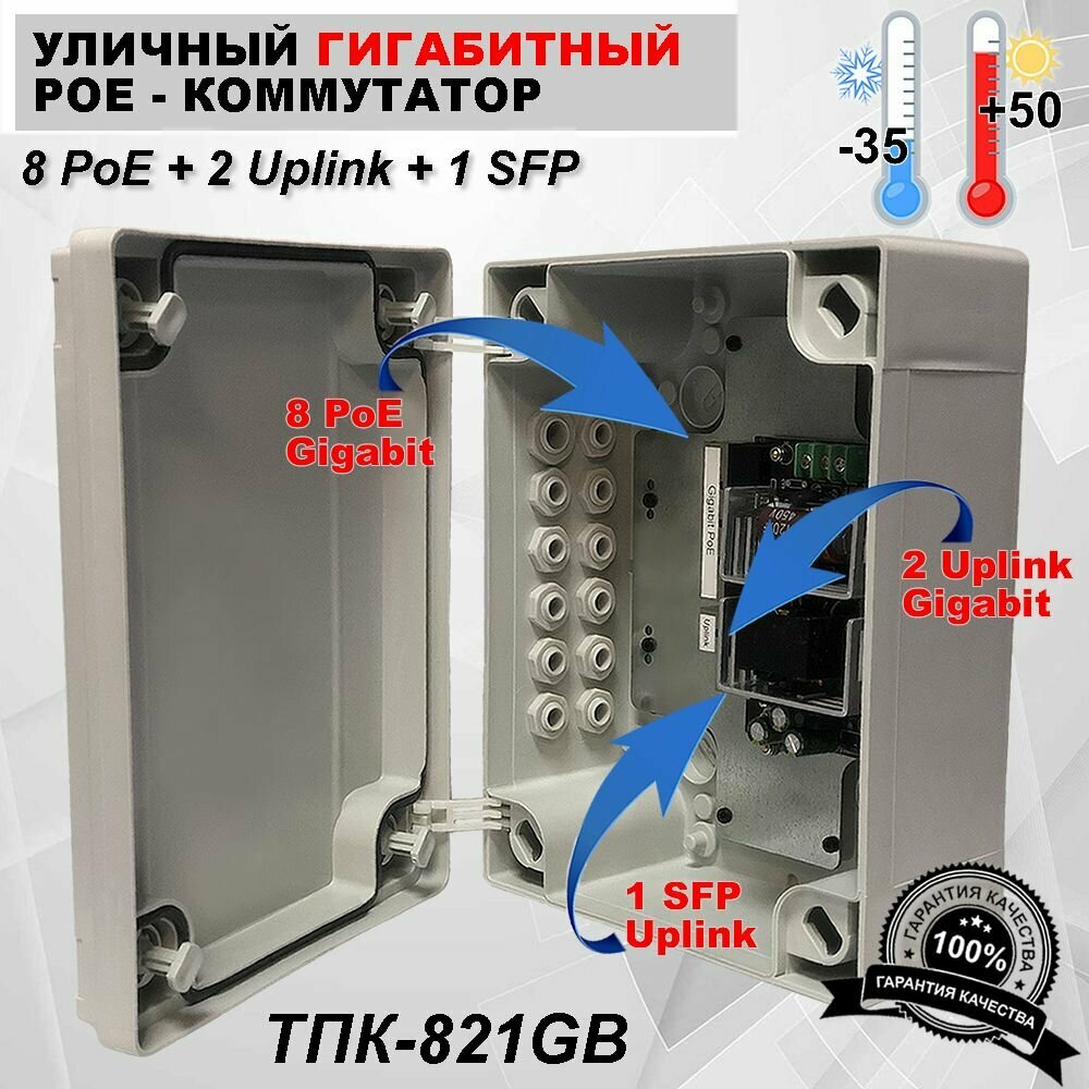 Уличный PoE коммутатор на 8 портов. Гигабитный. ТПК-821GB интересное: