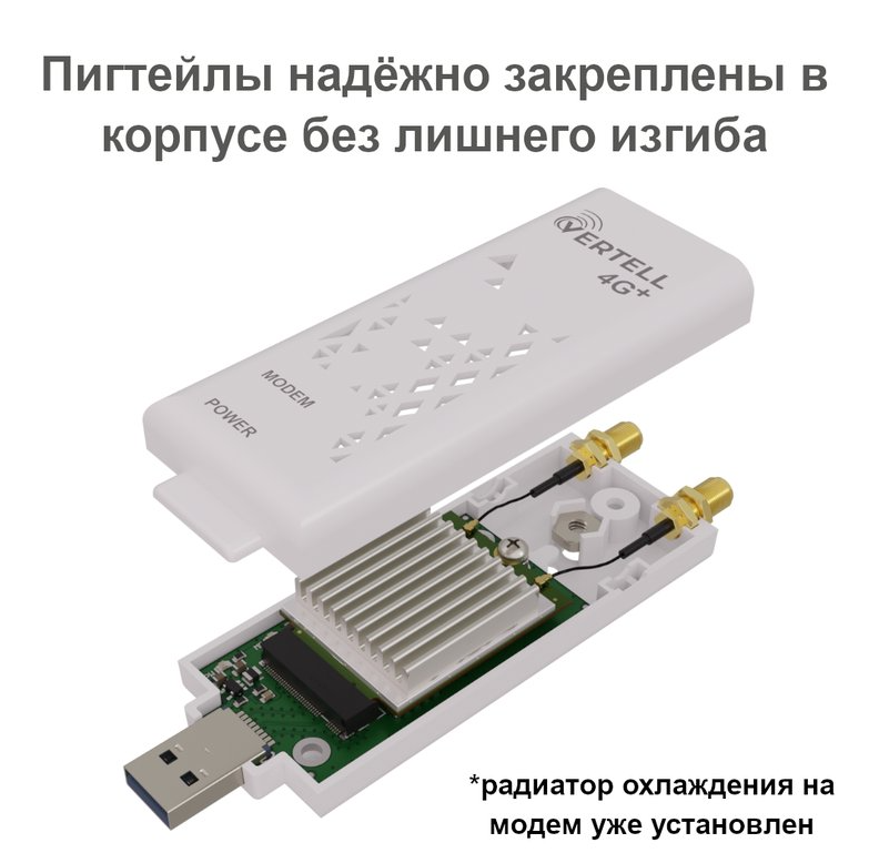 4G USB Универсальный USB Модем Vertell LONG M.2 Fibocom L850-GL интересное: