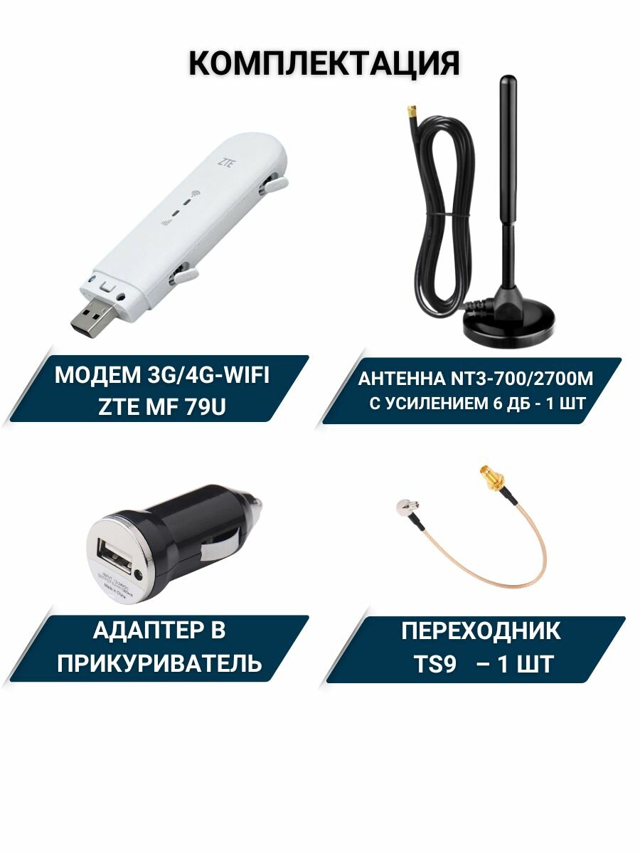 Автомобильный комплект WiFi 3G/4G/LTE модем для автомобиля ZTE MF79U с антенной NT3-700/2700M интересное: