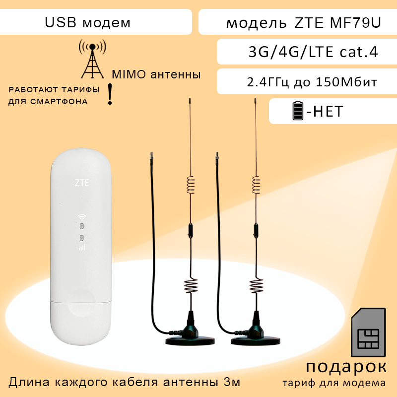 Модем USB Zte MF79, WiFi 2,4ГГц, скорость до 150Мбит c внешними антеннами 55cm на магнитной подставке интересное: